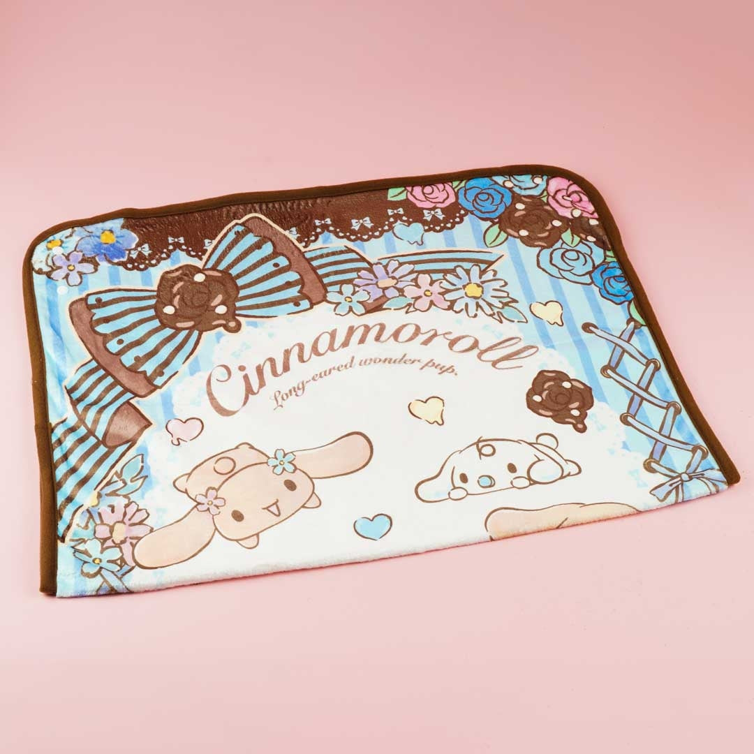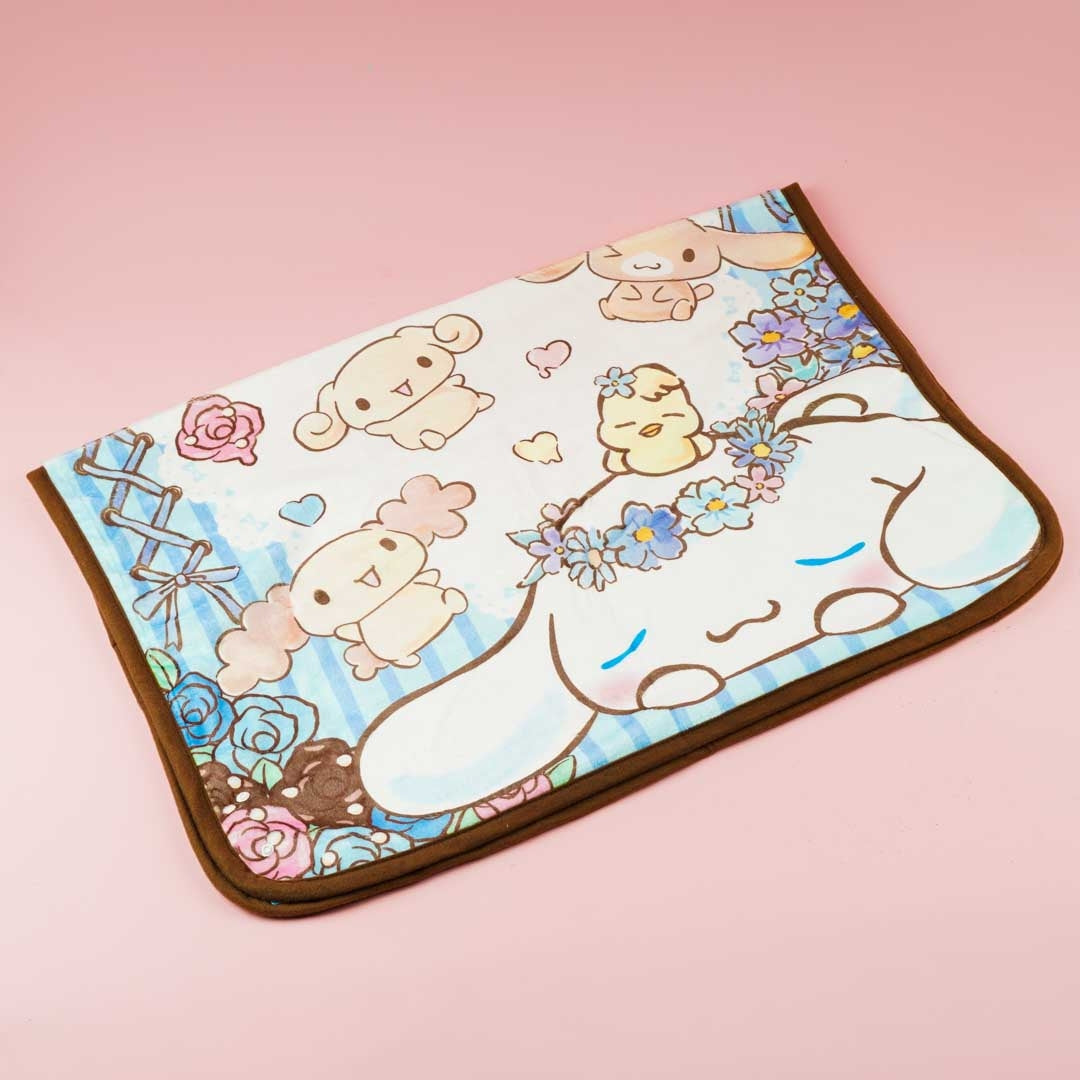• A cute fluffy blanket featuring prints of Cinnamoroll and flowers