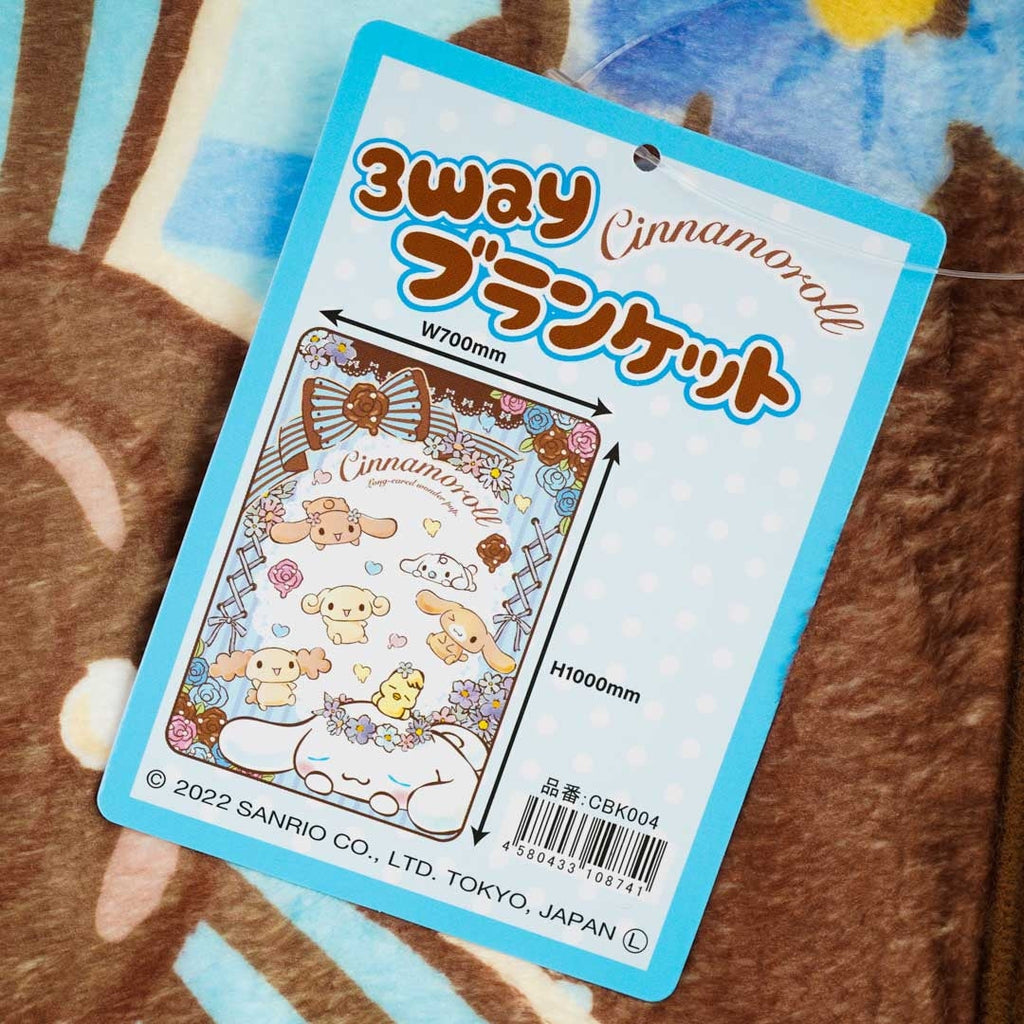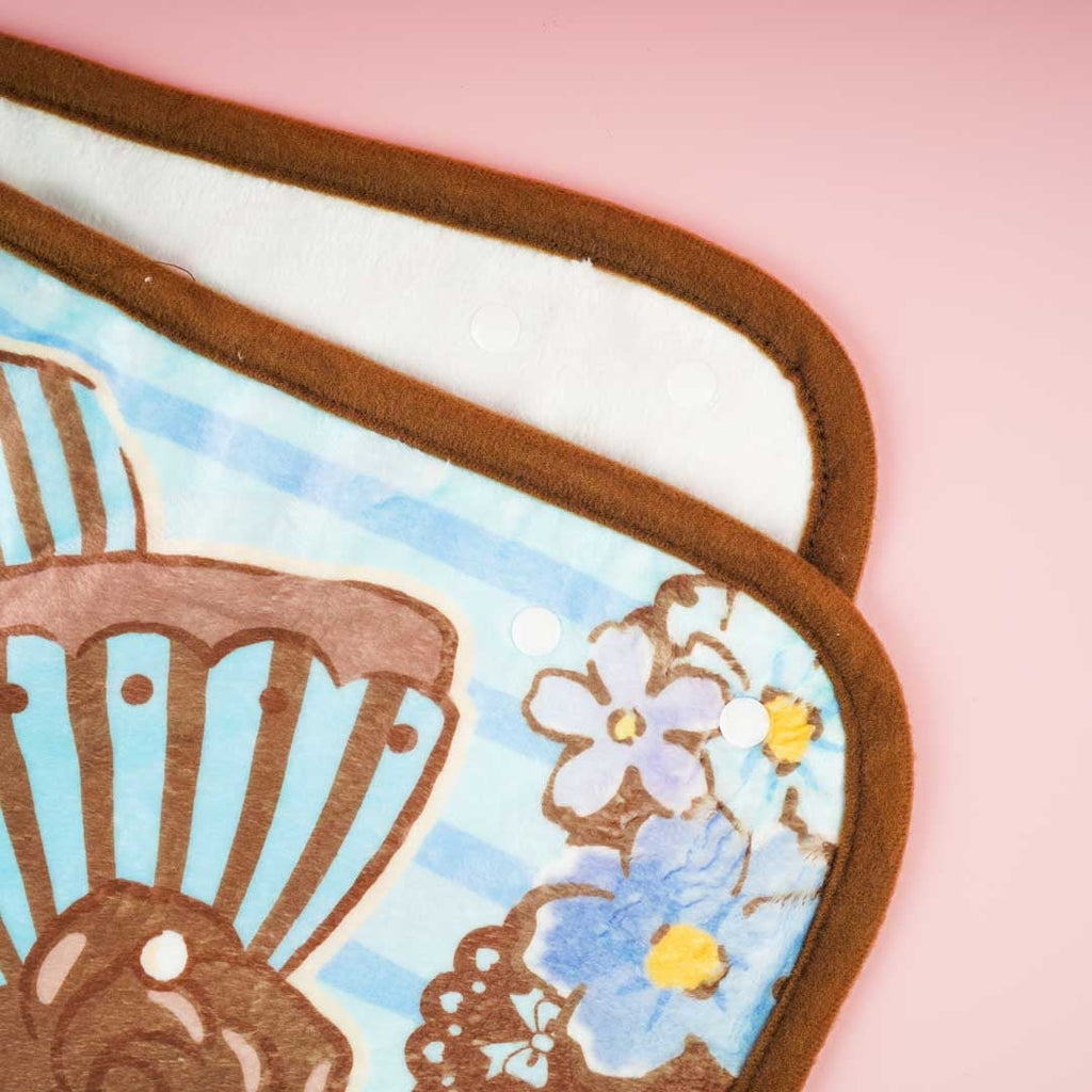 Lounge at home comfortably and cozily with the help of Cinnamoroll. This super kawaii fluffy blanket is covered in prints of Cinnamoroll and flowers. You can hang it on your shoulder or wrap it around your waist with the snap-on buttons.