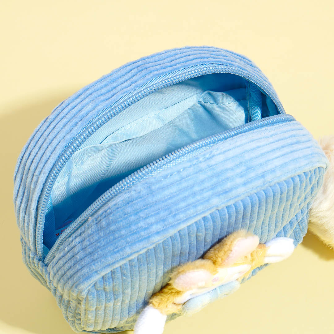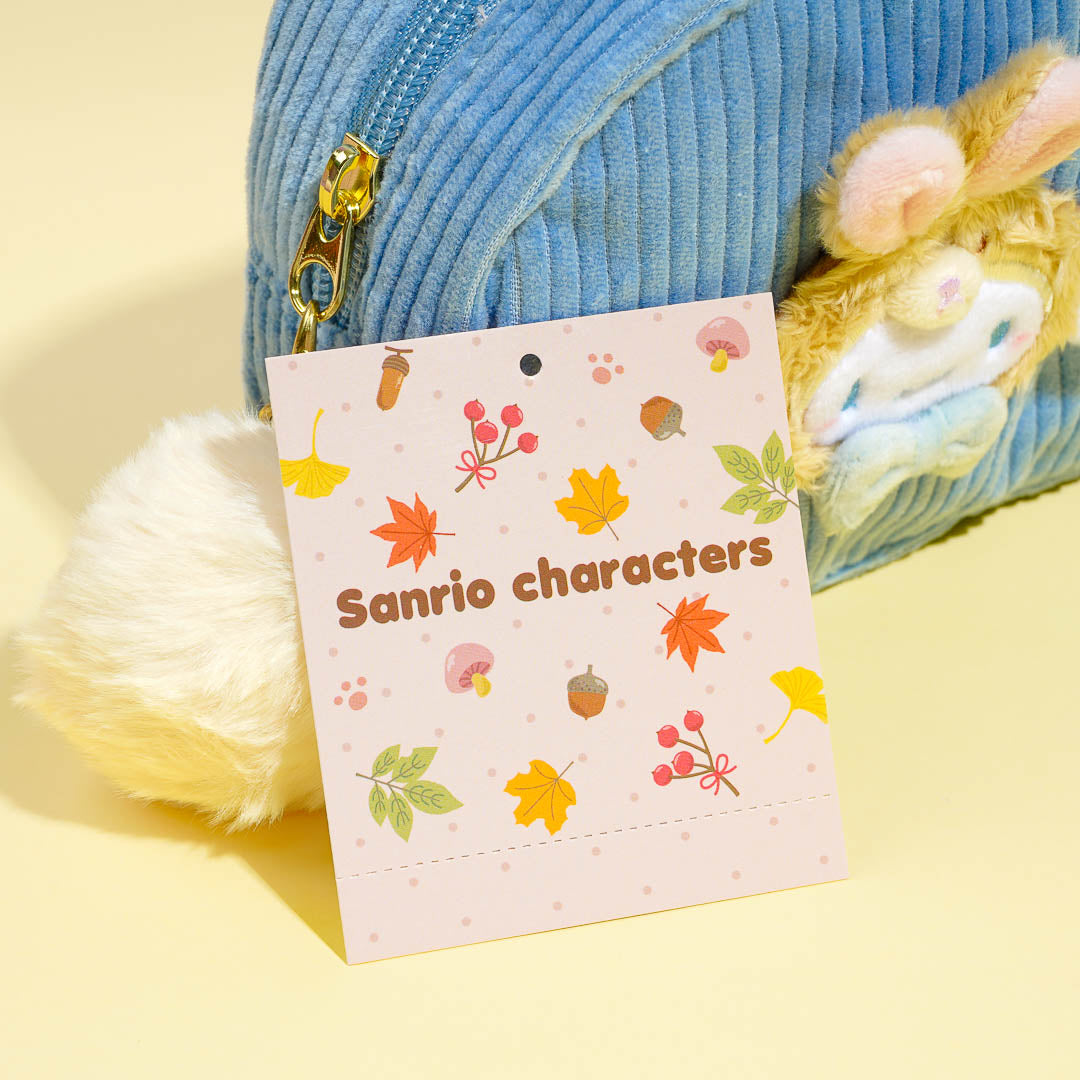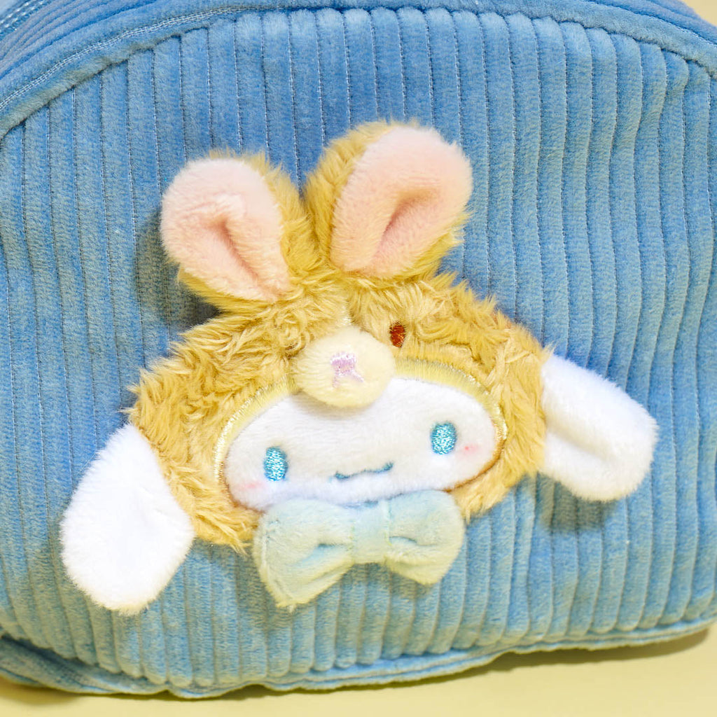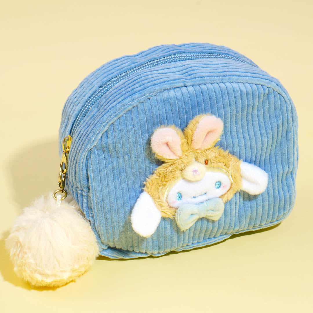 This kawaii pouch showcases an embroidered 3D design of Cinnamoroll wearing a rabbit head dress! It comes from the Sanrio Forest Animals series. Use this pouch to store your charms, trinkets, and other things.