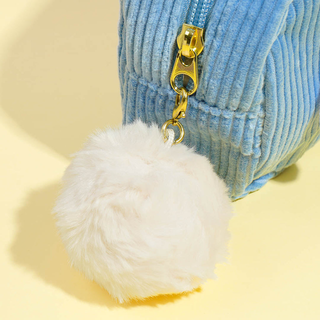 Features a zipper closure with a cute rabbit tail charm