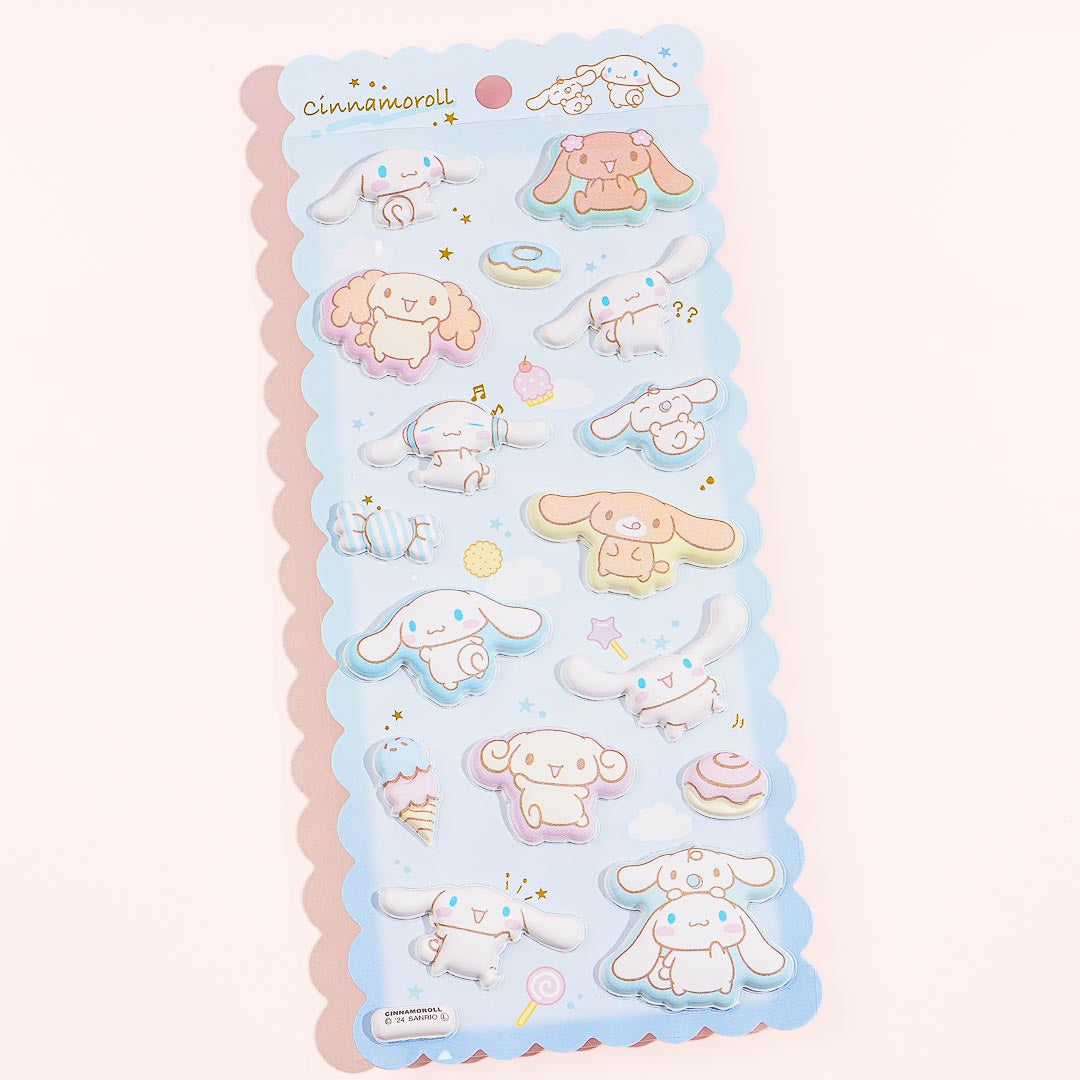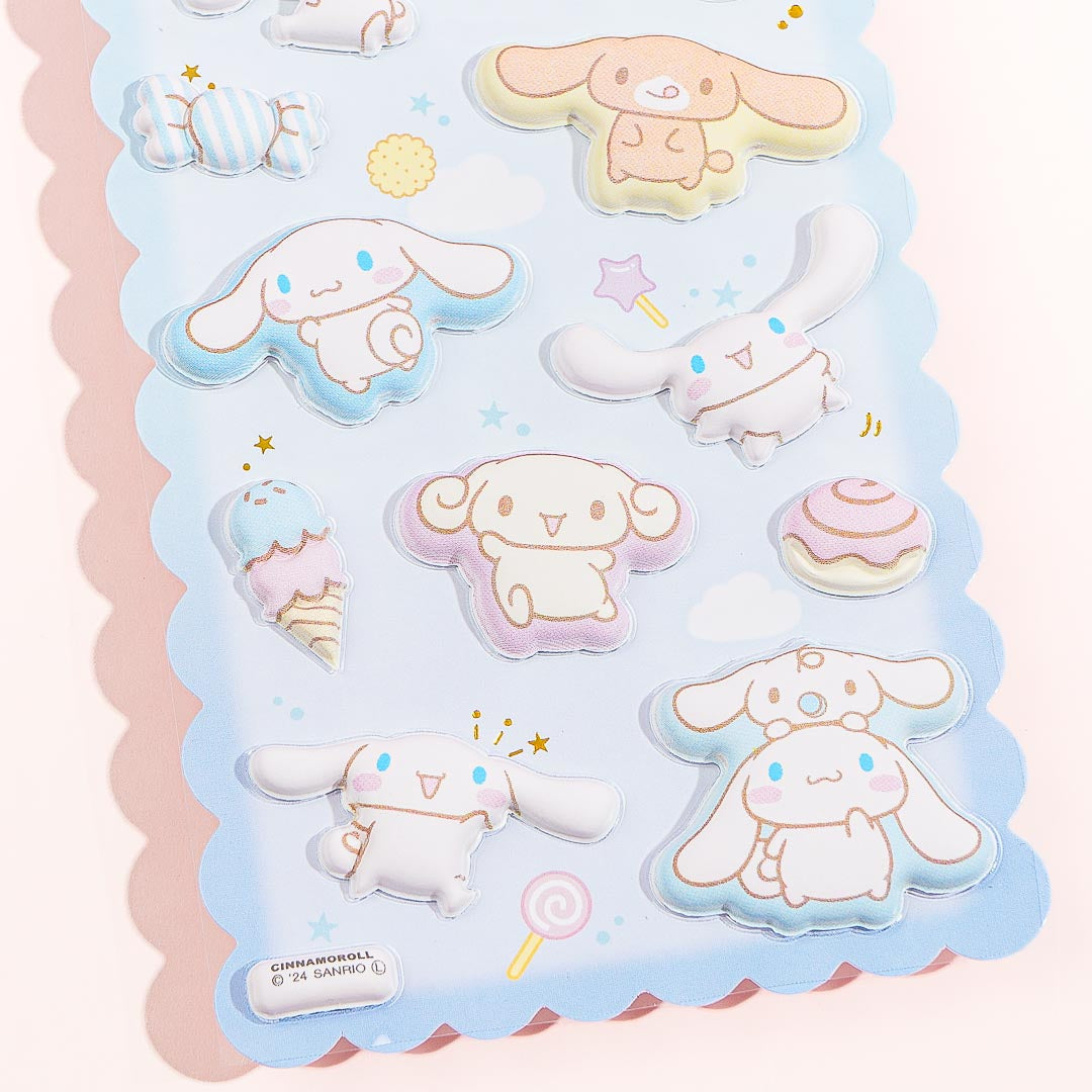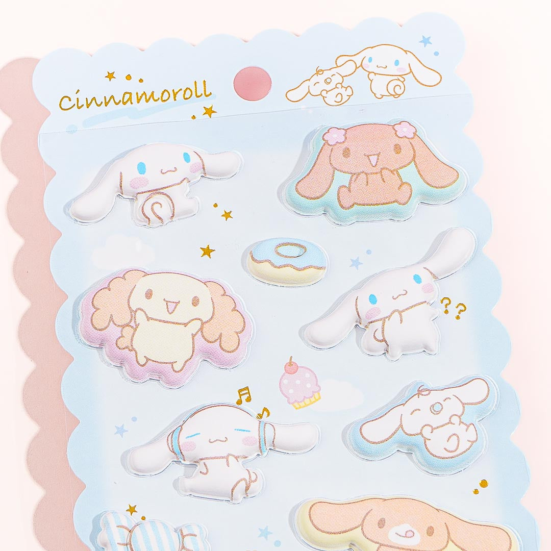 Have fun decorating your scrapbooks with these cute puffy stickers! The kawaii set has die-cut designs featuring prints of Cinnamoroll and his best friends hanging out together.