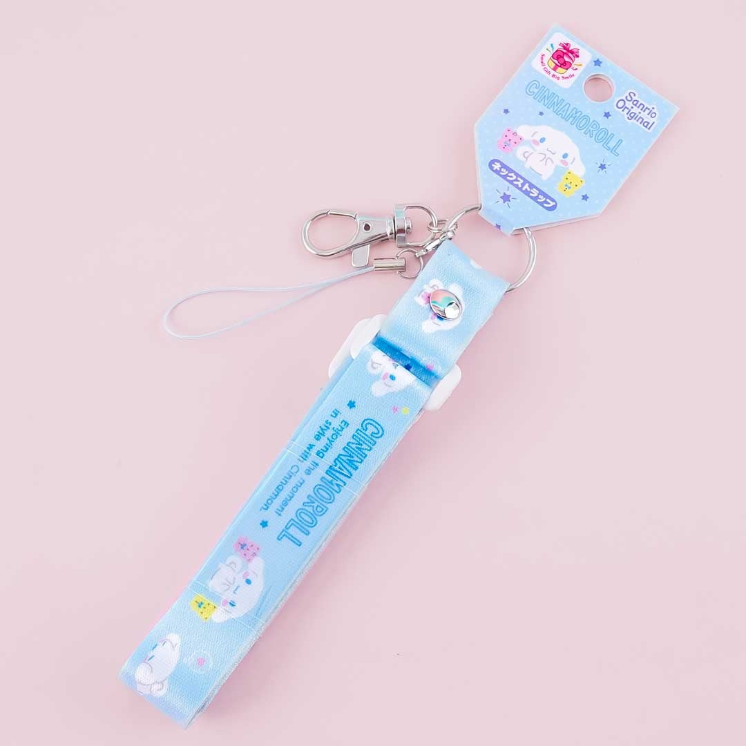 Add a dose of kawaii to your outfit by wearing this cute lanyard to school or to the office! It features prints of Cinnamoroll spending time with his friends. This lanyard has an adjustable strap, a mobile phone loop, and a metal clip for your ID or bus pass.