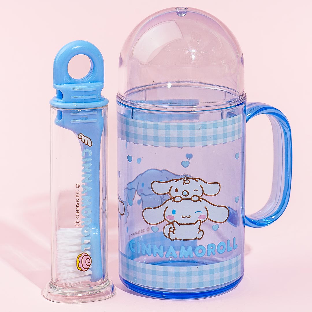 This super kawaii toothbrush set features prints of Cinnamrooll hanging out with his buddy, Milk! Don't forget to bring along this super kawaii toothbrush set while traveling. It has a toothbrush with a case that you can use as an extender. You can rinse your mouth after tooth brushing with the help of its covered cup!