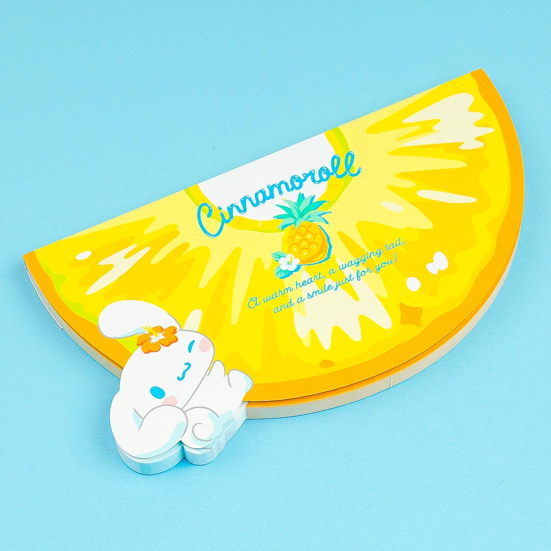 Scribble short reminders using this kawaii memo pad! It’s shaped like half a slice of a pineapple ring and has a cute illustration of a winking Cinnamoroll.