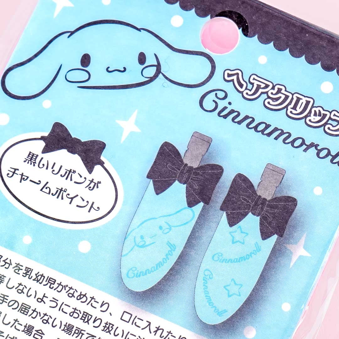 • A cute pair of shimmery barrettes with illustrations of Cinnamoroll