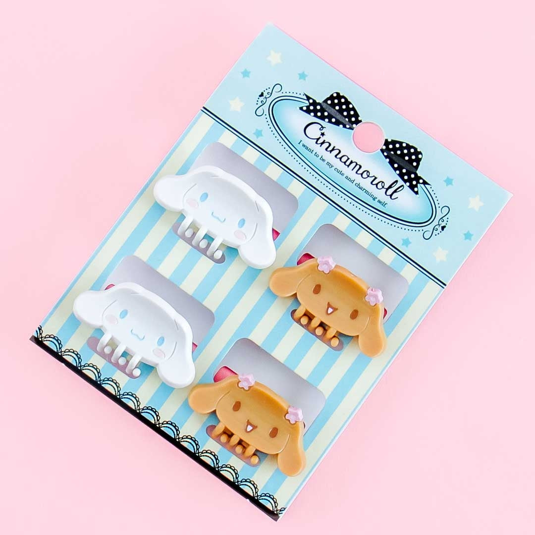 A super cute set of small hair clips shaped like Cinnamoroll and Mocha