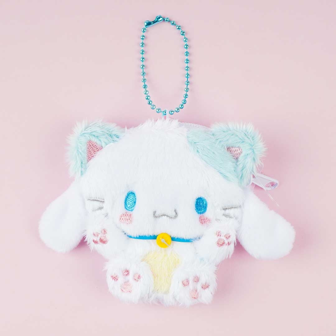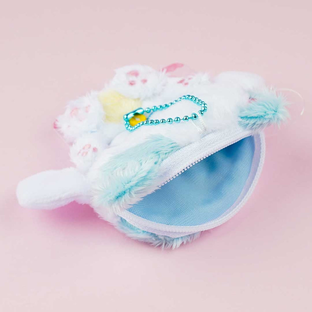 Cinnamoroll is wearing a cute cat costume in this fluffy plushie coin purse. Store accessories inside this zippered purse and use its detachable chain so you can hang it in your bag.
