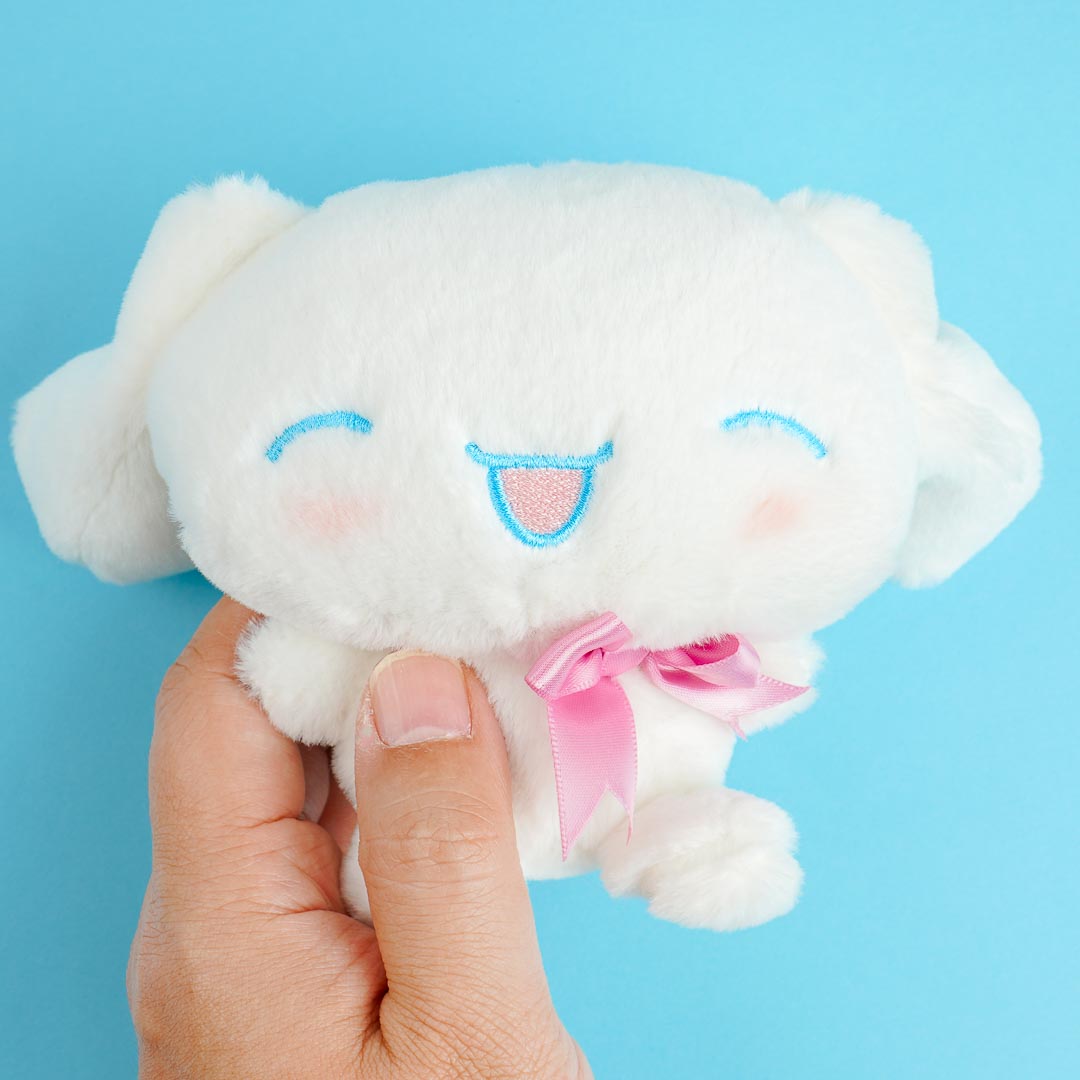 This kawaii plushie features a very happy Cinnamoroll! He has a big bright smile and is wearing a ribbon on his neck. You can change this plushie's pose so it's perfect as decoration.