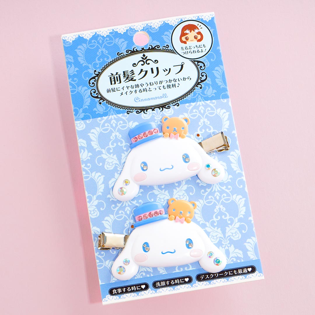 Put away stray hairs while you’re applying makeup by using these cute clips! Each piece has a Cinnamoroll face charm that’s wearing a hat and is filled with lots of mini jewels!