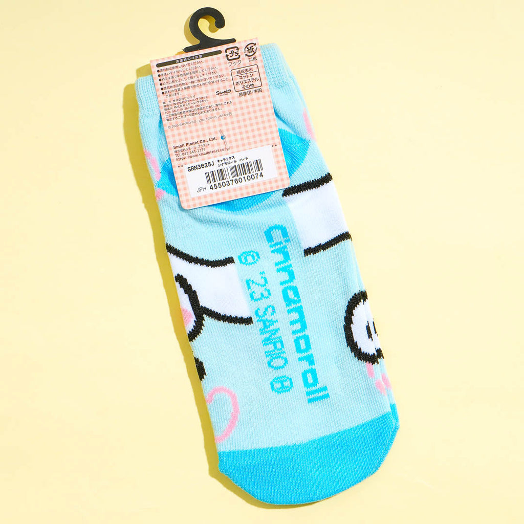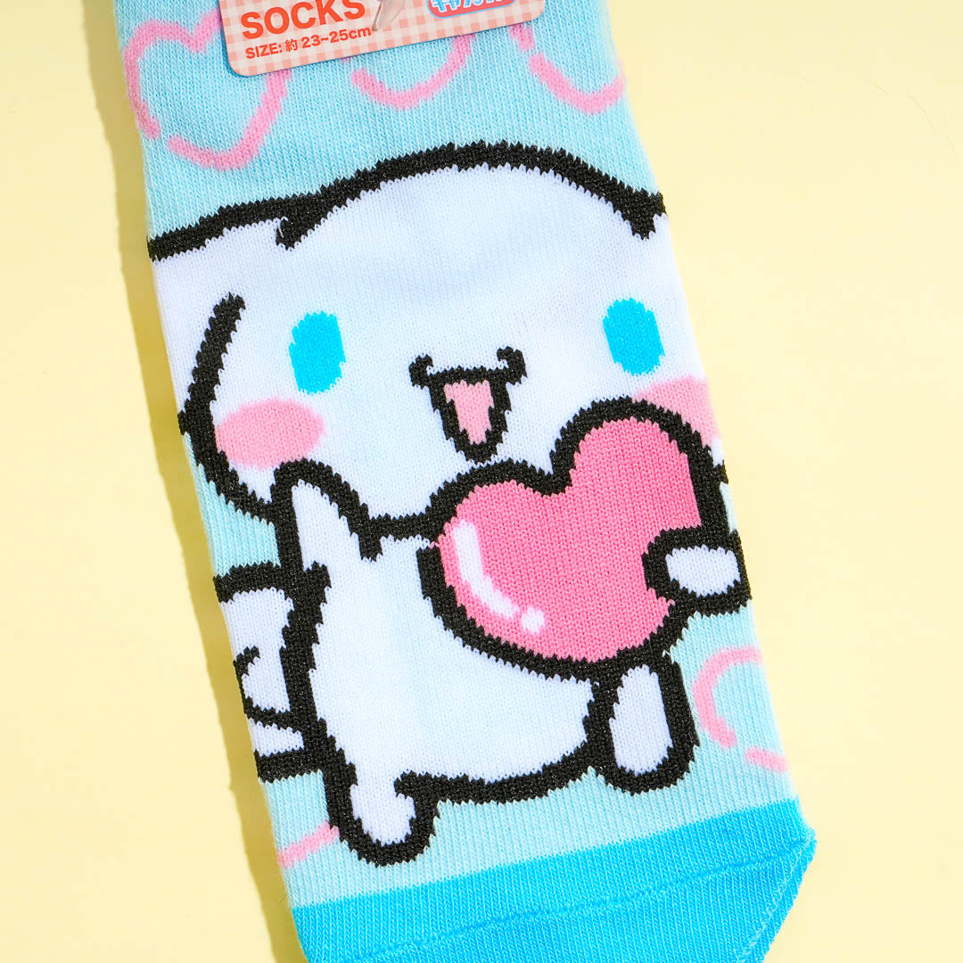 Complete your kawaii outfit of the day by wearing this cute pair of socks. They're illustrated with Cinnamoroll carrying around a heart.