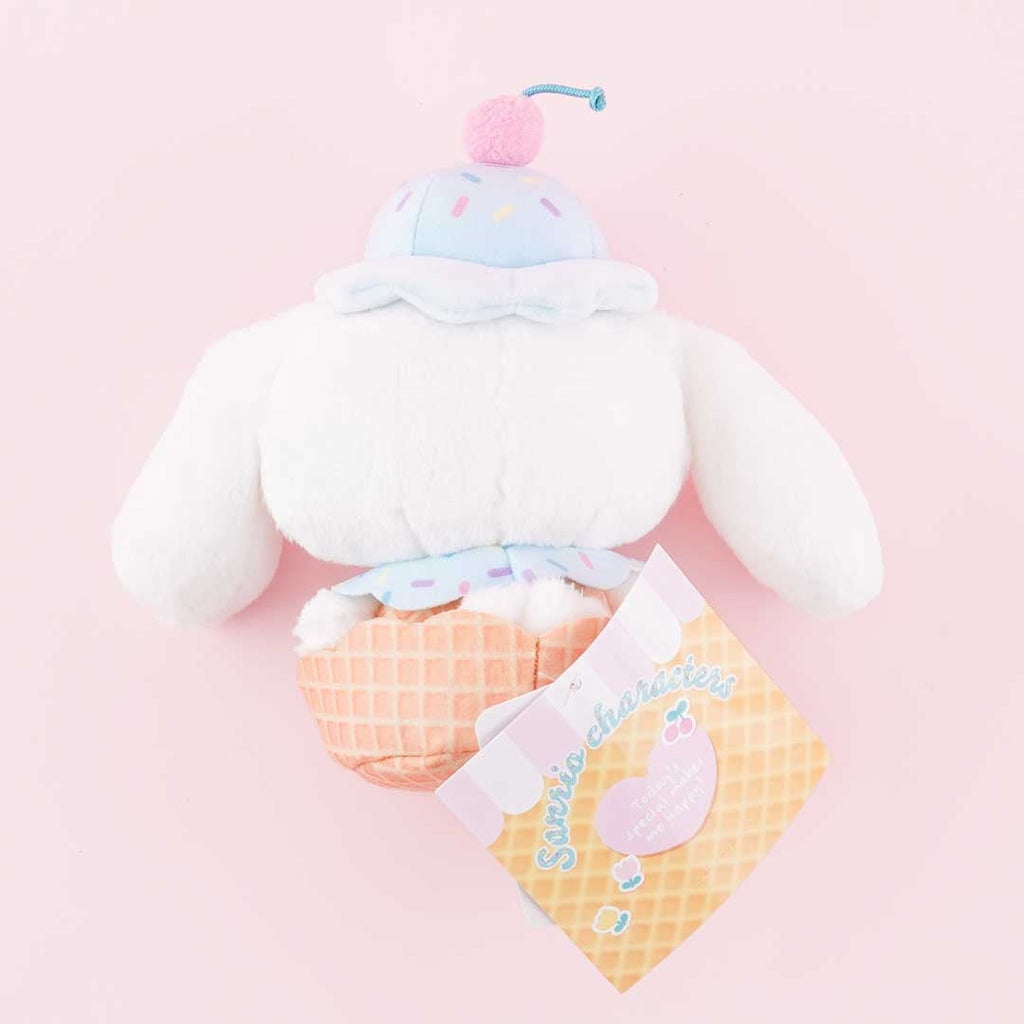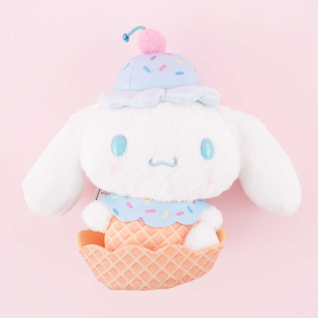 A kawaii medium Cinnamoroll plushie dressed as an ice cream cone