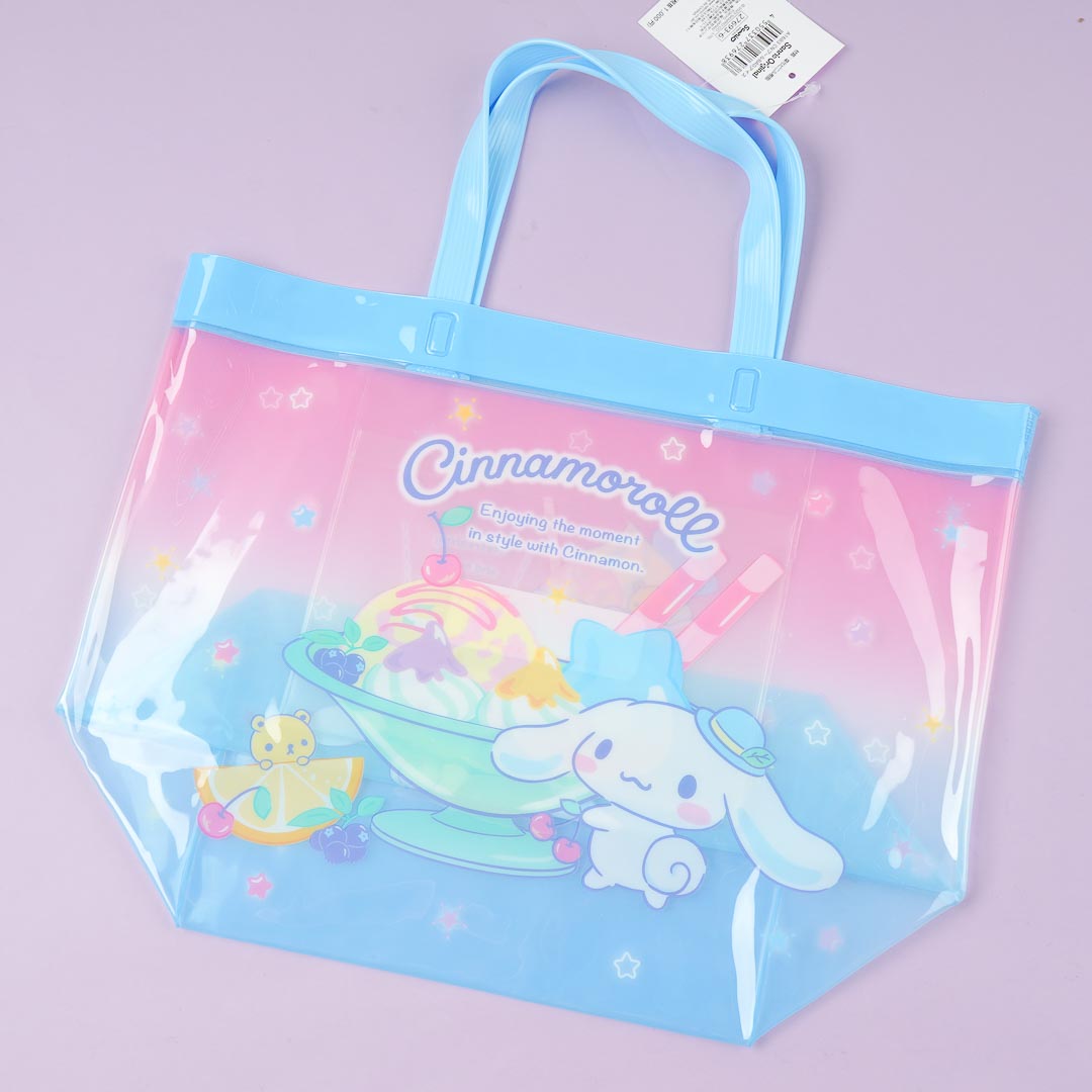 Place the towel and extra clothes you need for your afternoon pool time in this super kawaii tote bag. It's illustrated with Cinnamoroll trying to eat one giant ice cream sundae! This tote is made from durable plastic material that helps keep your things from getting wet at the pool side.