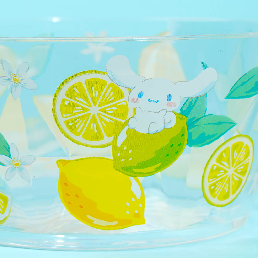 This kawaii clear bowl is decorated with super cute illustrations of Cinnamoroll hugging huge lemon slices! Use this bowl to serve your favorite iced dessert or hot soup.