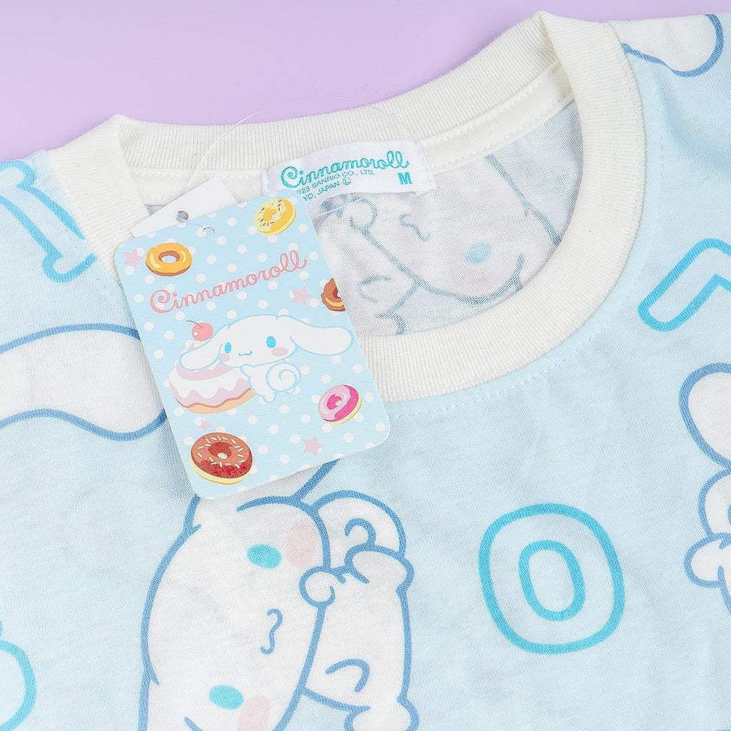 Wear this cute shirt and spread kawaii vibes! It's covered with prints of Cinnamoroll and the letters of his name.