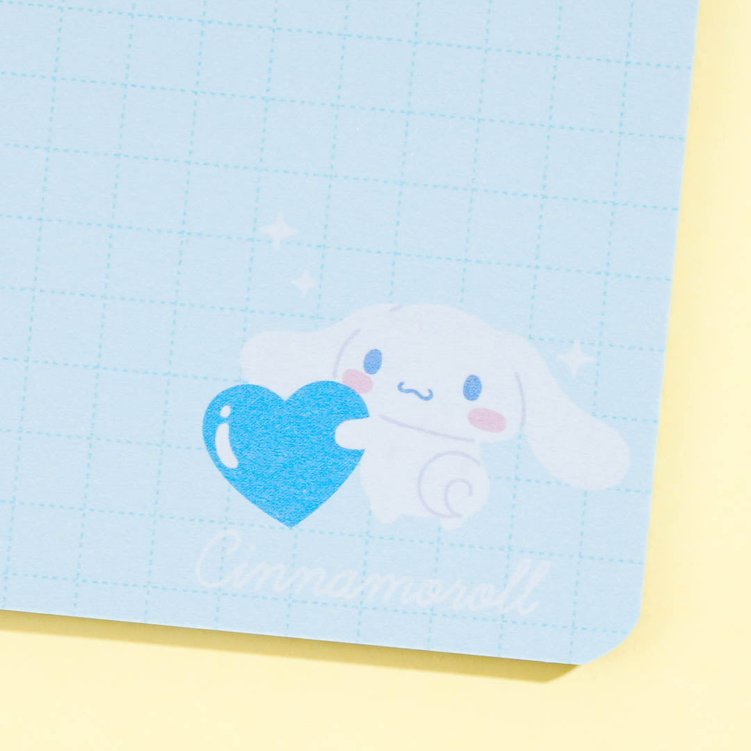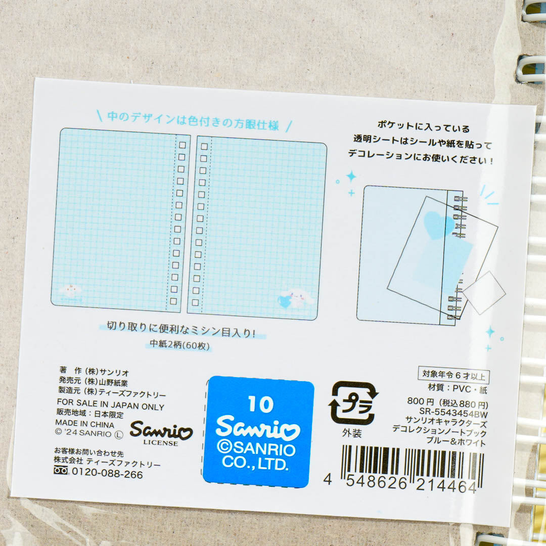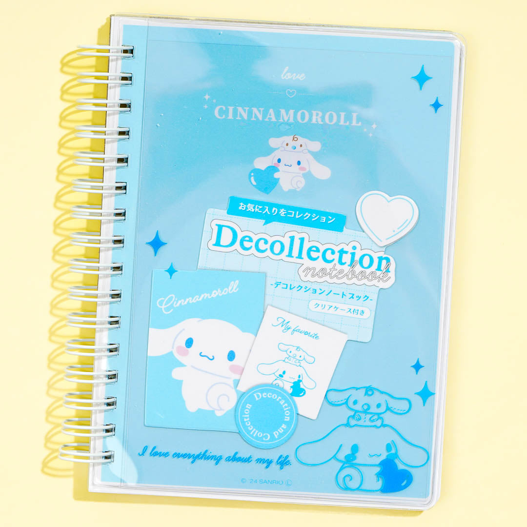 This "decollection" notebook from Sanrio can be decorated with your collection of photos and stickers! There's a transparent pocket on the cover where you can put your collage. Each page of this spiral notebook has grid lines and prints of Cinnamoroll holding a heart.