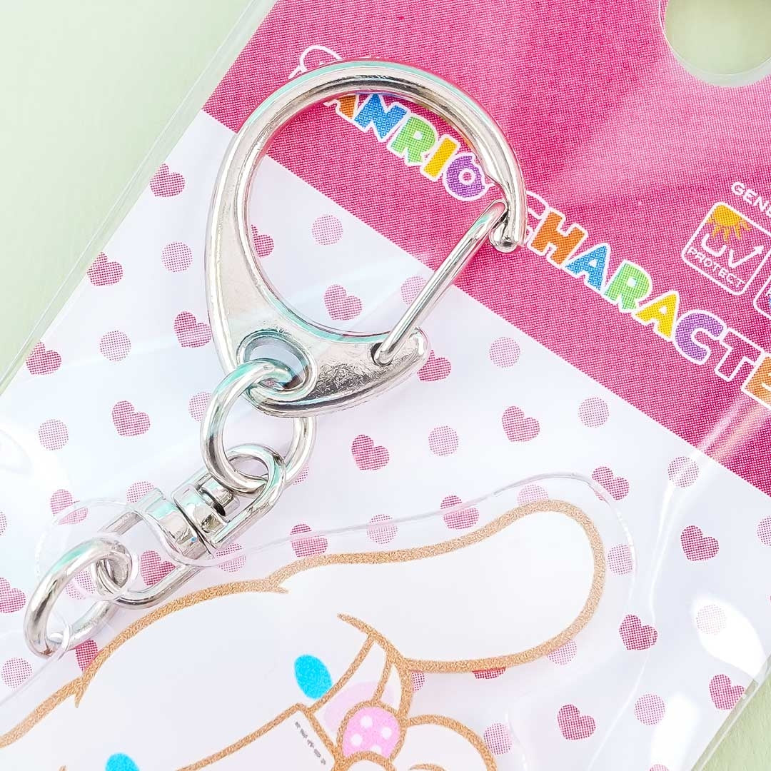 This super kawaii acrylic charm comes from the Sanrio Mask series! It features a print Cinnamoroll wearing a mask while strumming on a guitar. Attach this acrylic charm to your favorite bag with its metal clip!