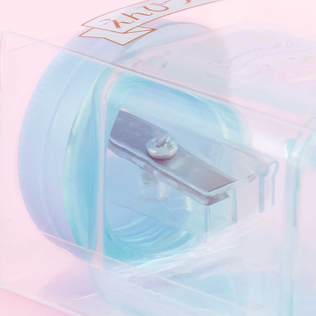 Use this super cute mason jar-shaped sharpener to sharpen your pencils! The transparent mason jar container features prints of Cinnamoroll playing with a French macaron. It also has a cute screw-on lid