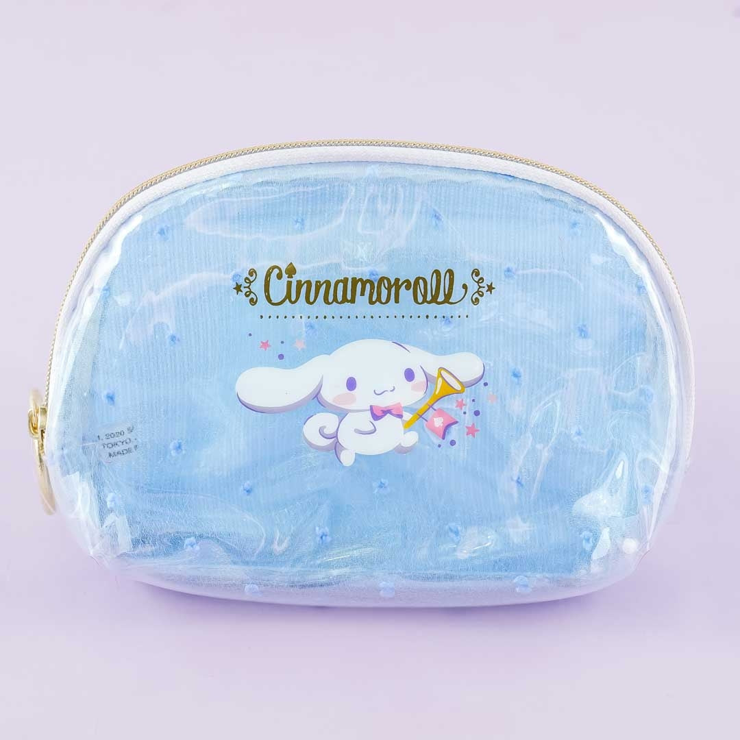 This super cute cosmetic bag has an outer PVC plastic layer decorated with a fun print of Cinnamoroll holding his magical trumpet! Its inner layer has embroidered dots and this handy pouch comes with zipper closure. Use this kawaii wide-mouth bag to keep your favorite lipsticks, eyeshadow pots, and more!