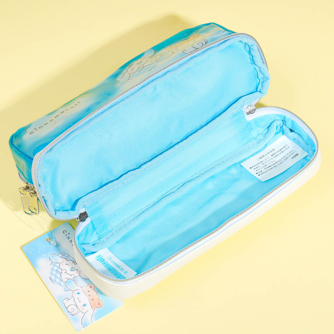 Use this super kawaii pencil case to store your pens, markers, highlighters, and more. It has a main compartment and a bottom compartment where you can place your things. This cute zippered pouch is illustrated with Cinnamoroll and Milk playing among the clouds!
