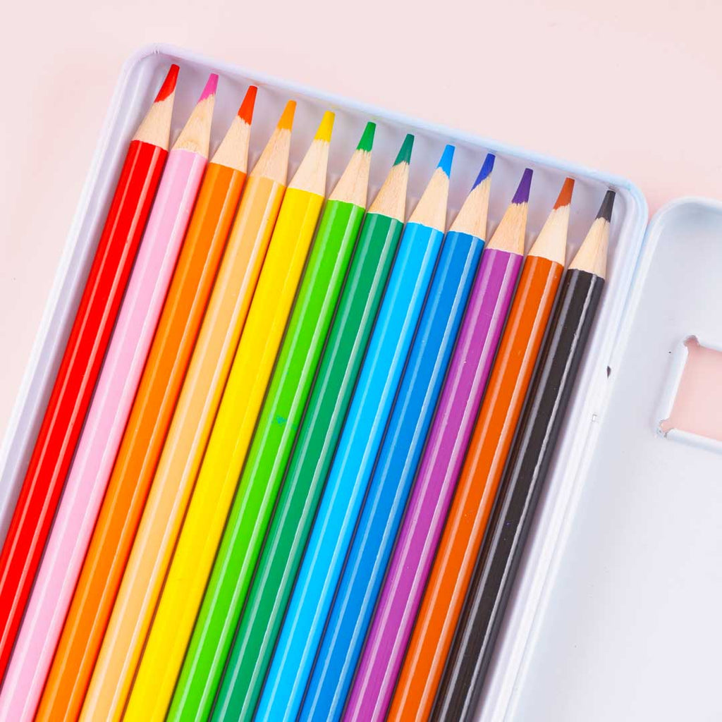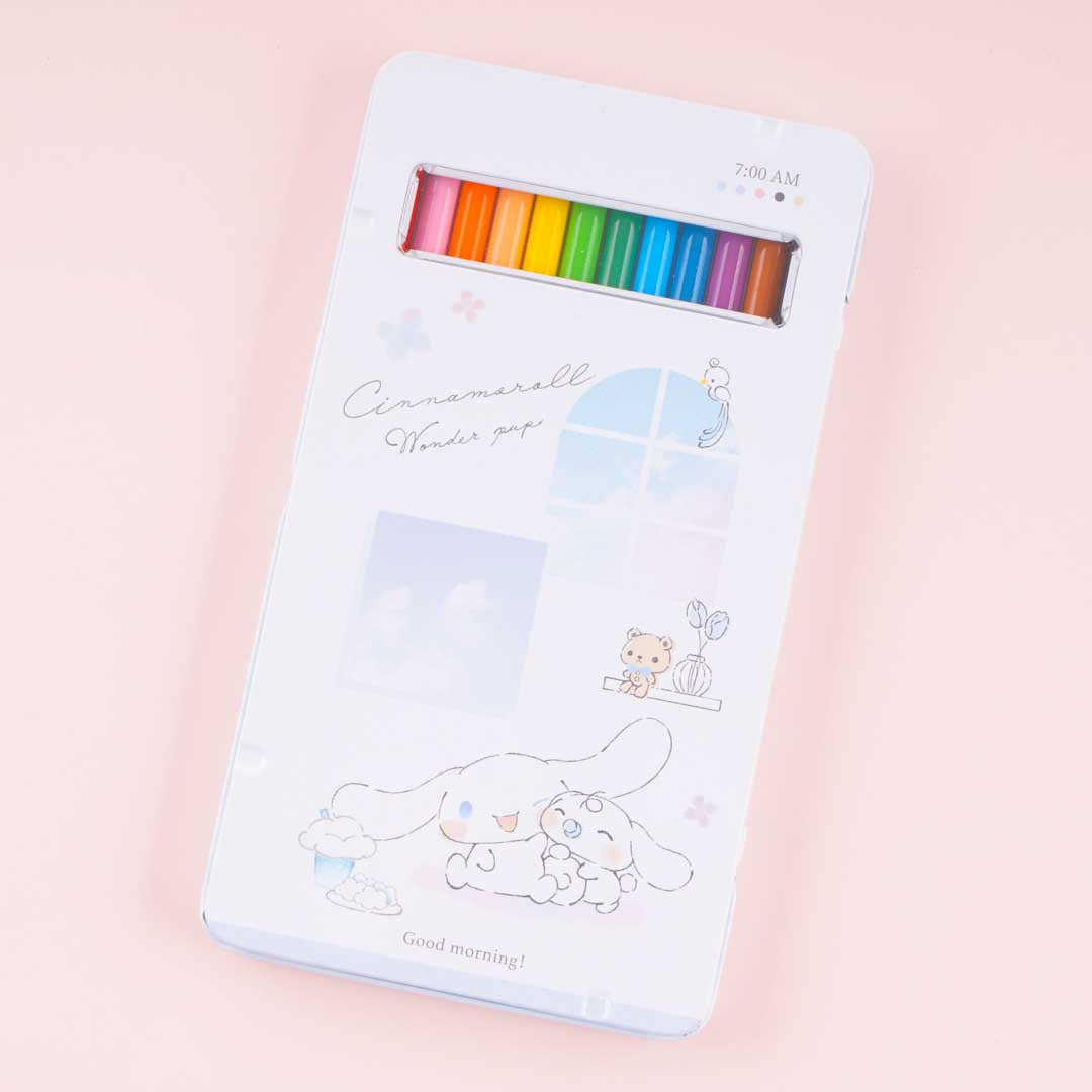 This super cute set of colored pencils has twelve different hues and comes in a convenient tin case that’s decorated with prints of Cinnamoroll and Milk. Use this kawaii set to create sketches!