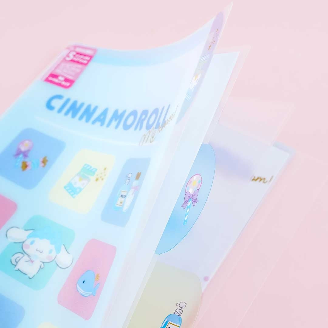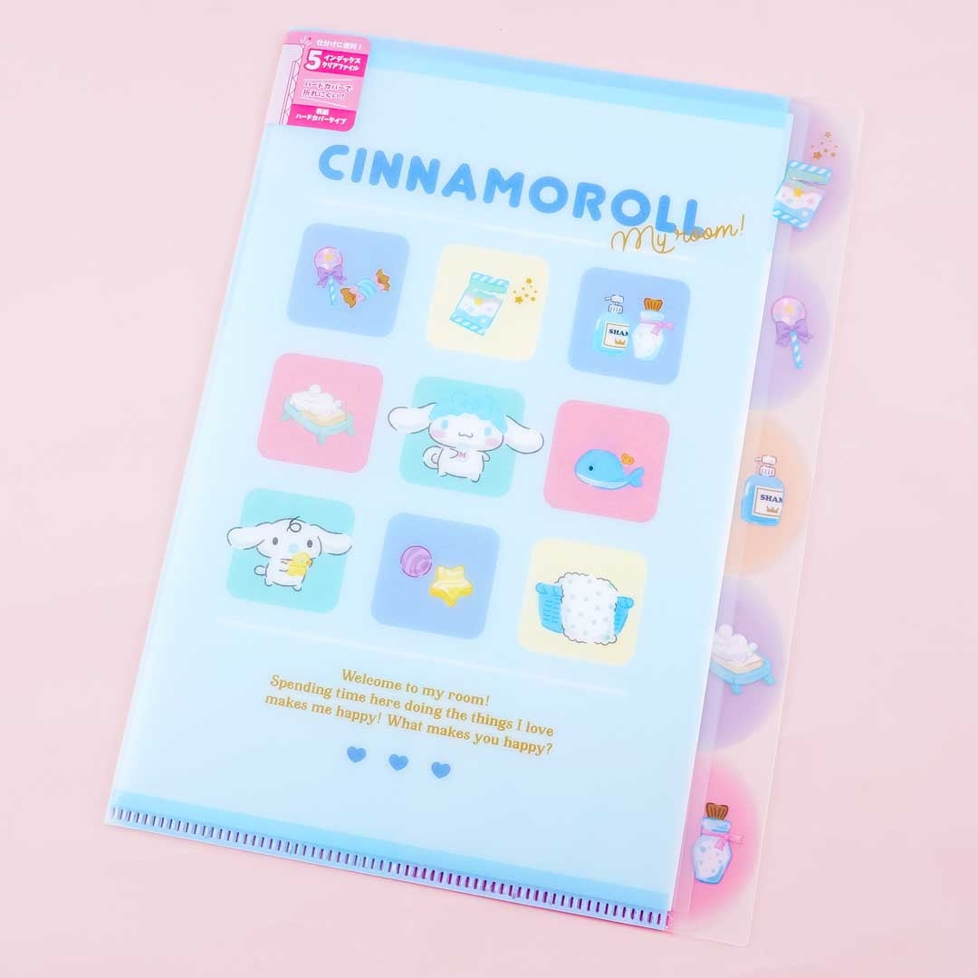 A kawaii multi-slot file folder with prints of objects seen inside Cinnamoroll’s room