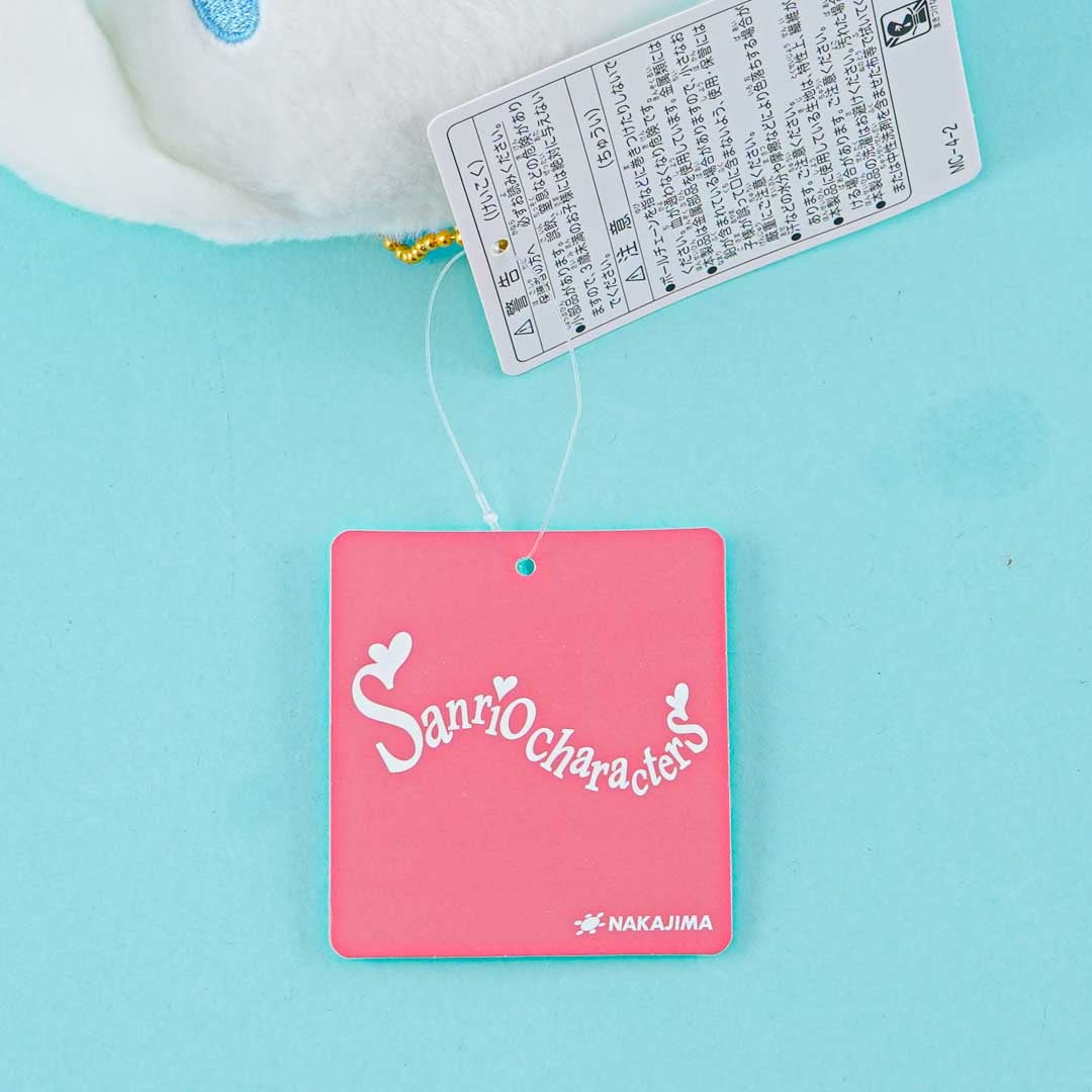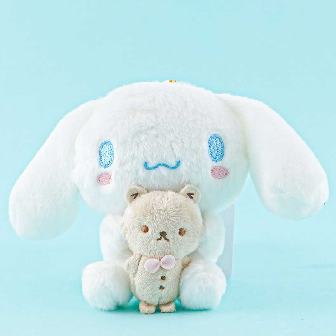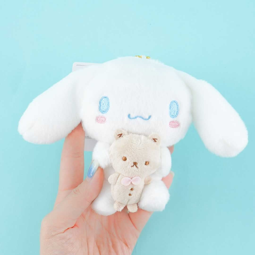 Add this super cute Cinnamoroll plushie hugging a “nakayoshi” or a friend to your collection! This medium fluffy cutie comes with a small teddy bear and a removable gold ball chain so you can attach it to your favorite purse.