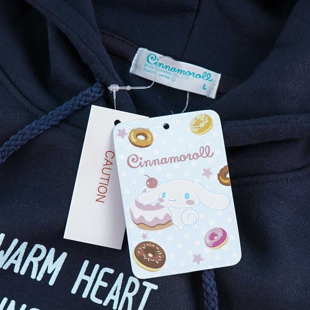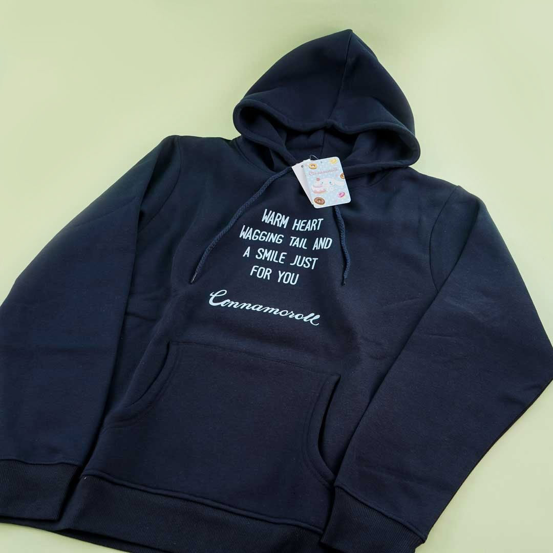 Stay warm by wearing this super kawaii hoodie! It has embroidery of Cinnamoroll on its back side and on its front side, it has a cute description of the Sanrio puppy. This hoodie is super comfy to wear!