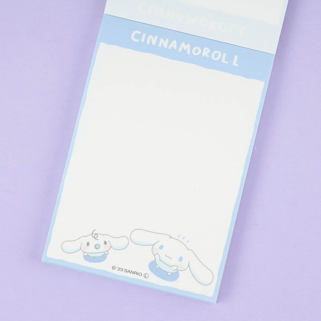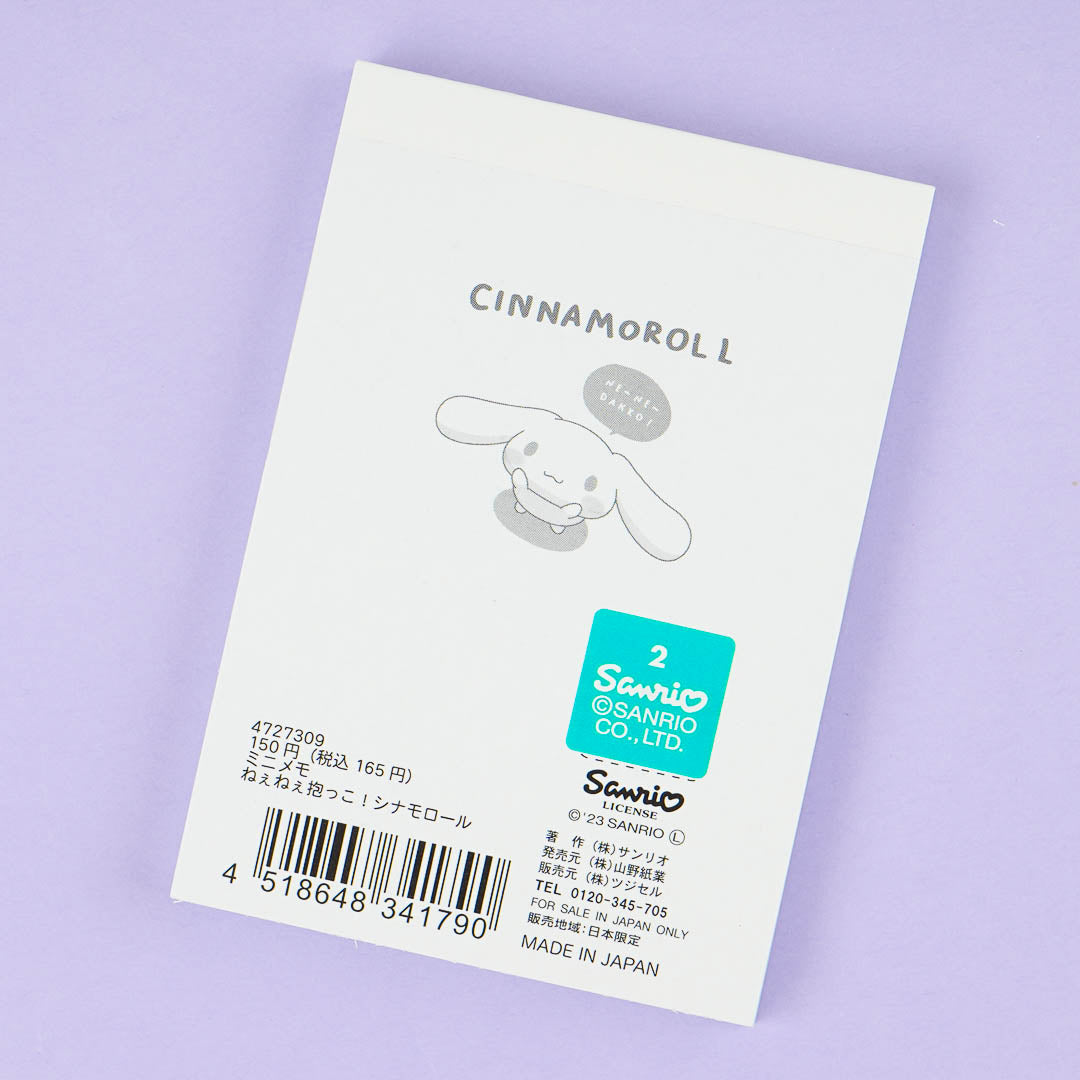 Write down important notes or reminders on this kawaii mini memo pad! It showcases two sheet patterns and a cute cover featuring Cinnamoroll asking to be picked up like a baby.