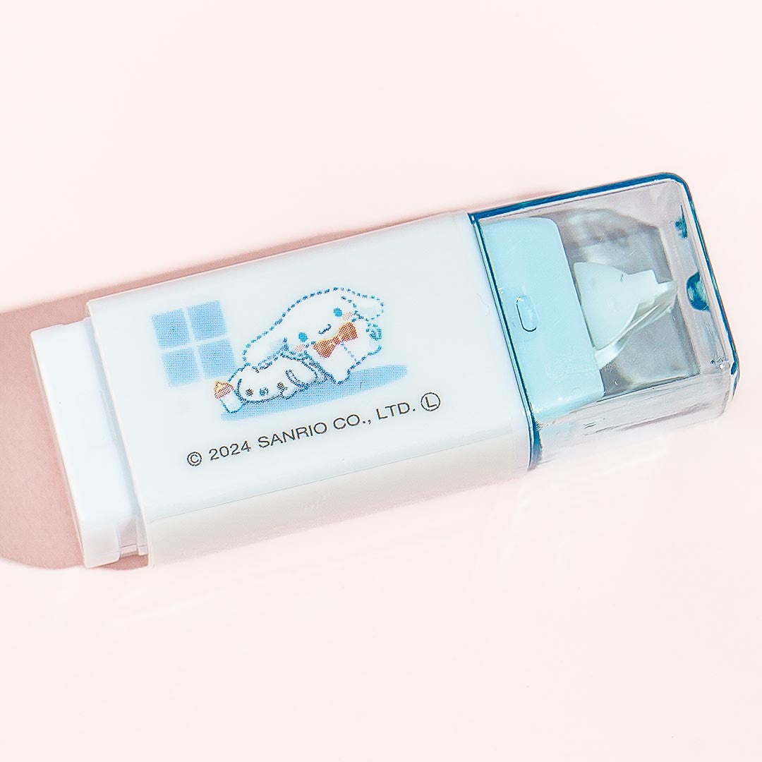 This kawaii correction tape has super cute prints of Cinnamoroll hugging a plushie that looks like him. Use it to fix your writing mistakes! Just press on the tip and roll it out to dispense the correction tape. The pen-type dispenser is called “nicoichi,” which means “two-in-one” in Japanese, as it can be connected with a glue tape dispenser from the same series.