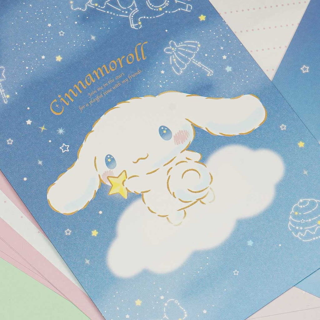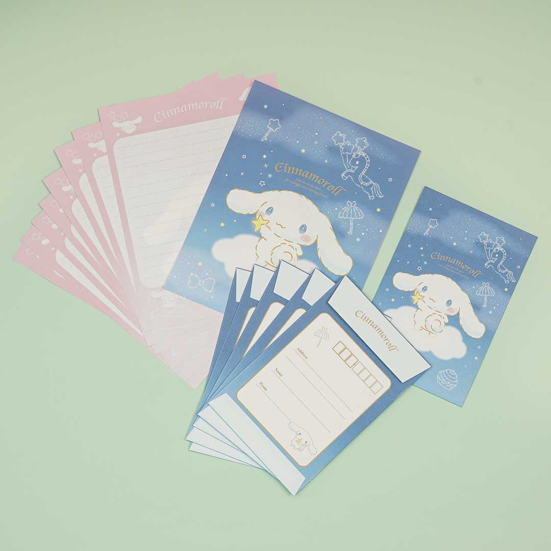 • A kawaii letter set featuring prints of Cinnamoroll playing in the night sky