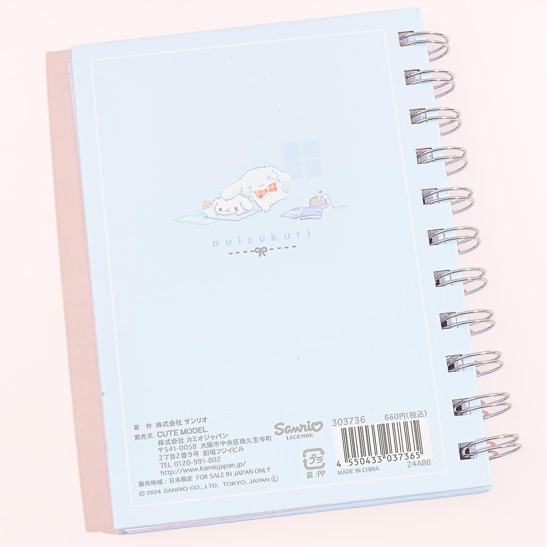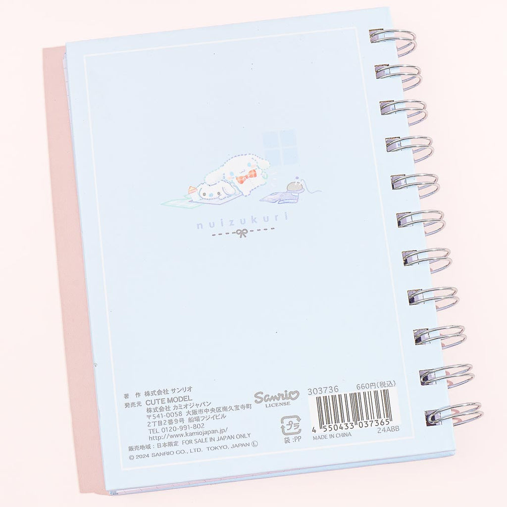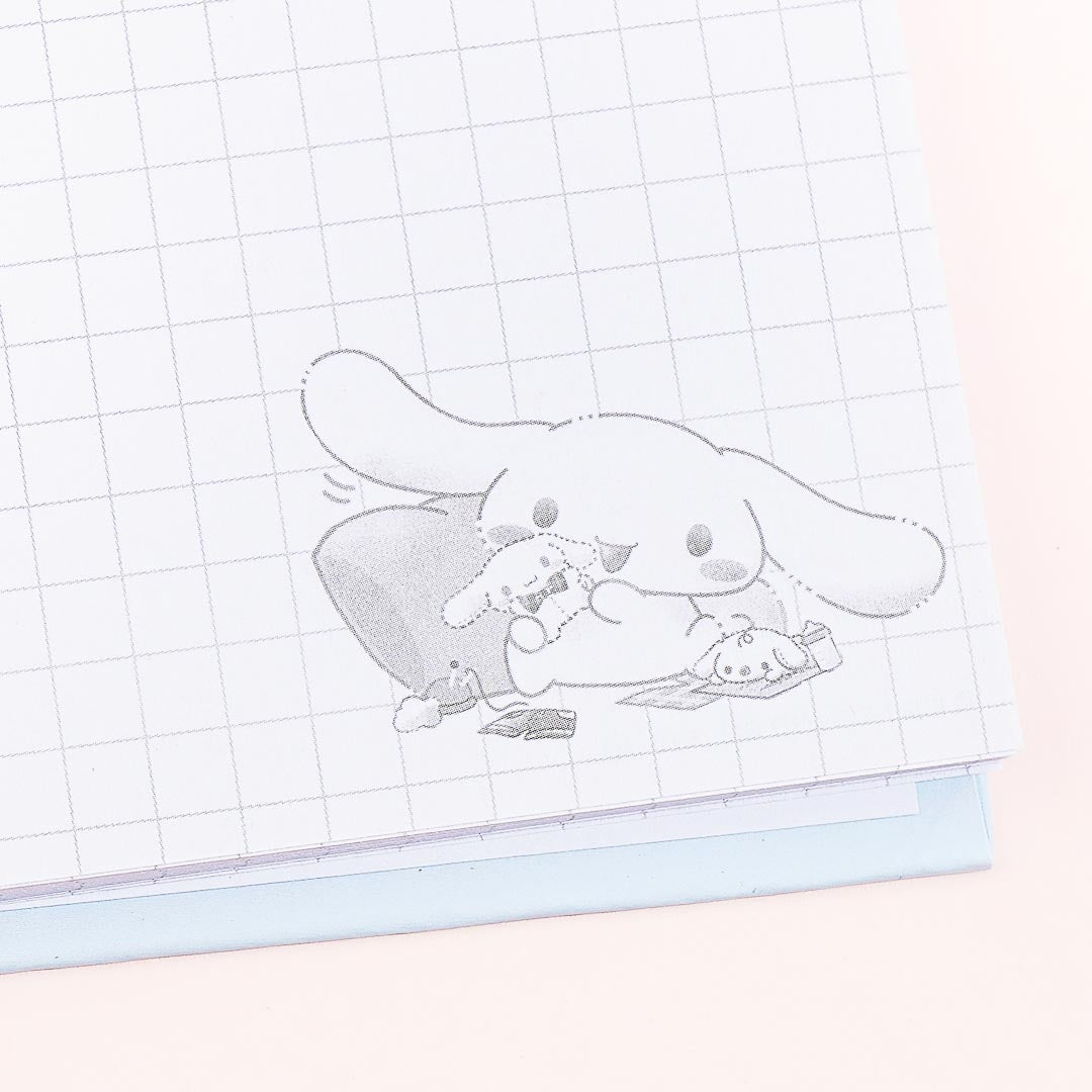 Have fun sketching and doodling on the grid pages of this cute spiral notebook. It features prints of Cinnamoroll playing with a plush toy that looks like him.