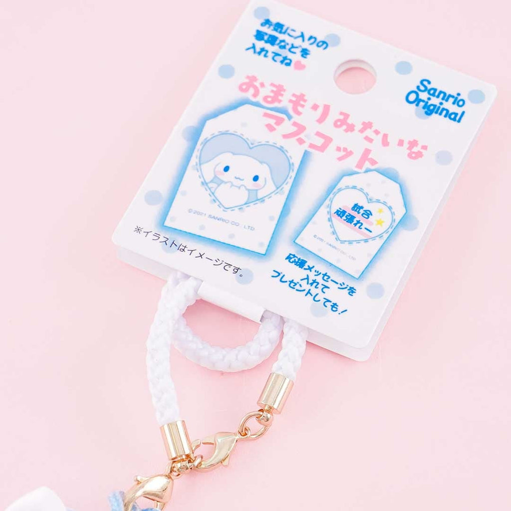 Bless your best friend with good luck and protection by giving them this kawaii omamori string charm. An omamori is a Japanese lucky charm that is often sold at shrines and temples. This one is illustrated with Cinnamoroll!