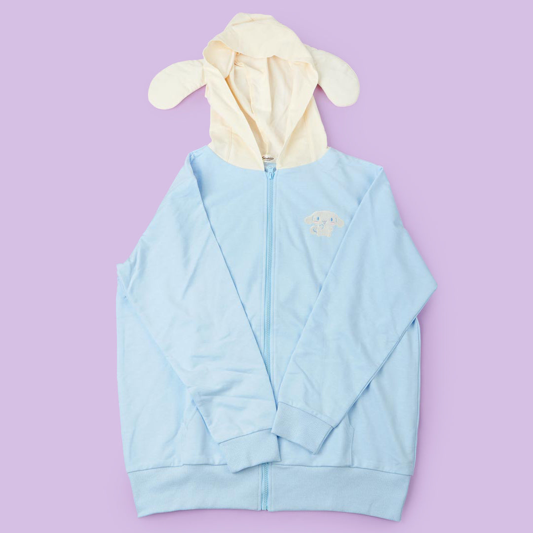 This kawaii zip-up hoodie has a cute embroidery of Cinnamoroll at the front! The hood part is also decorated with this Sanrio cutie’s iconic large white floppy ears! Wear this comfy hoodie during cold rainy days to keep you warm.