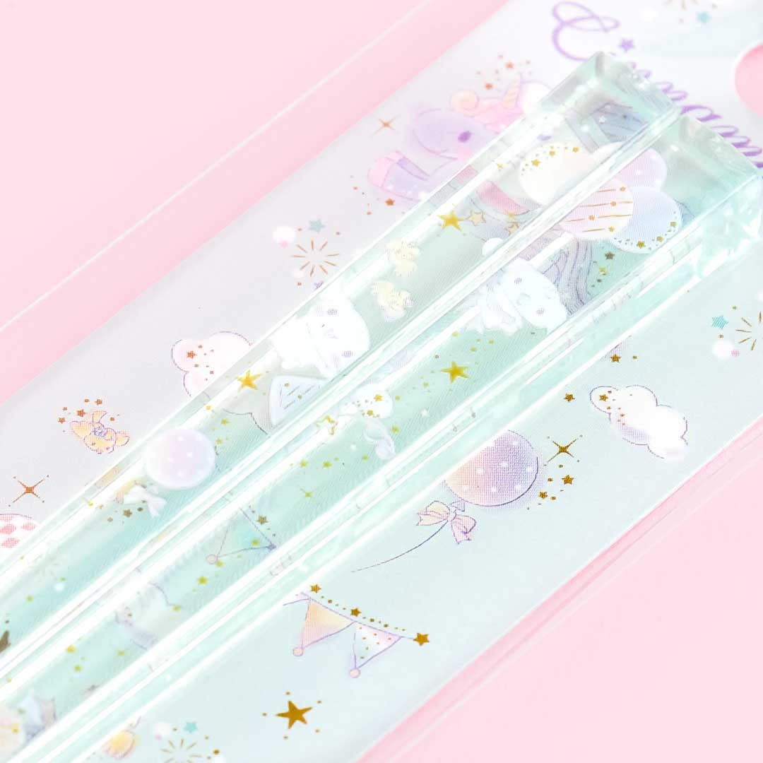 Kawaii-fy your meals with this pair of chopsticks featuring Cinnamoroll having a fun celebration! It has a square shape making it difficult for the chopsticks to roll off. The tip is also non-slip. This reusable chopstick pair is made of clear plastic material and is dishwasher safe.