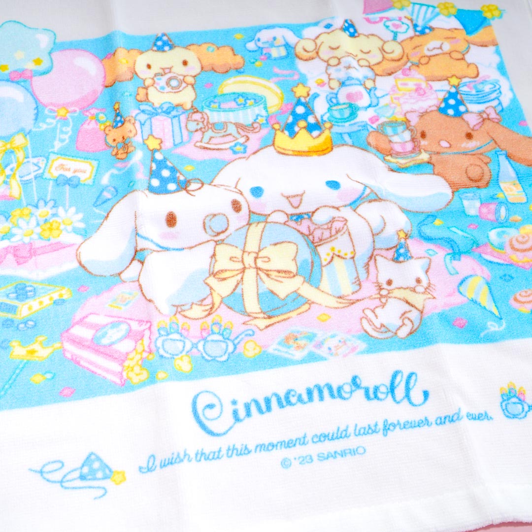 Make sure your face stays nice and dry with this super cute towel. It's decorated with a print of Cinnamoroll and his friends having a big party! This quick-drying face towel is perfect to bring along while playing with friends at the park.