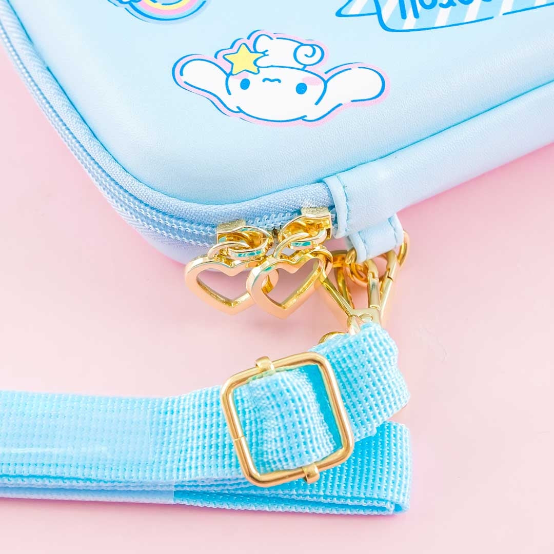 Carry around your game console using this super cute pouch covered in prints of Cinnamoroll with party things! It has zipper closures and an inner mesh pocket. Bring it along with you using its detachable strap.
