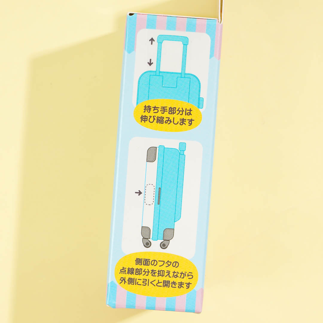 Use this super kawaii carry case desktop organizer to sort out small items like clips, pins, and more. It features prints of Cinnamoroll playing with his friend Milk! This luggage-shaped desktop organizer has an expandable handle and casters that rotate.