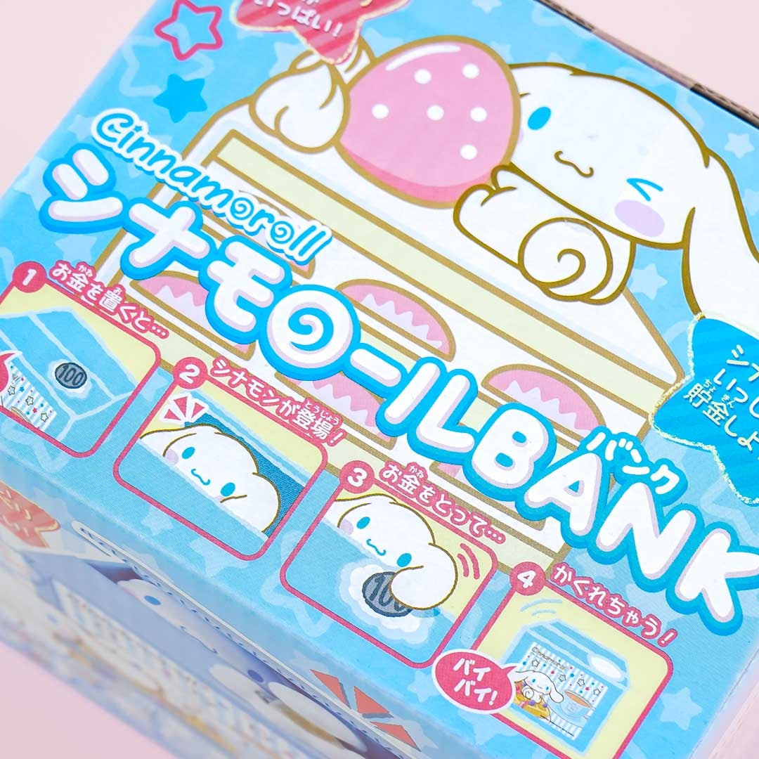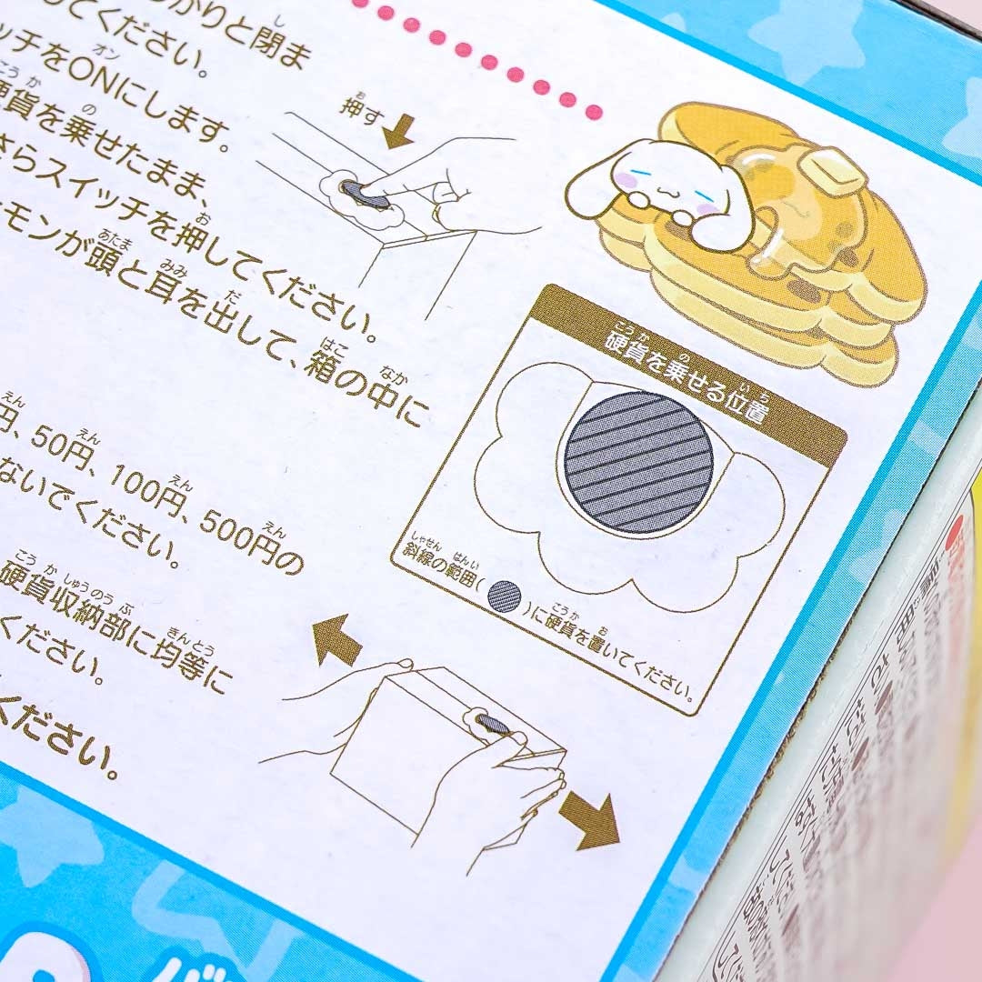 Cinnamoroll has turned into a mischievous little thief! Place a coin on the plate of this super kawaii piggy bank toy and watch Cinnamoroll come out to take your money away from you. This piggy bank toy also plays music when Cinnamoroll pops out to hide your coin.