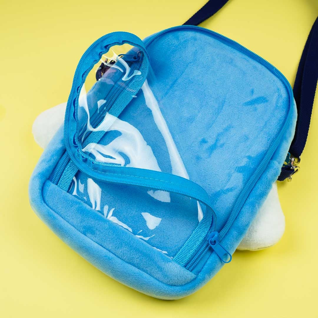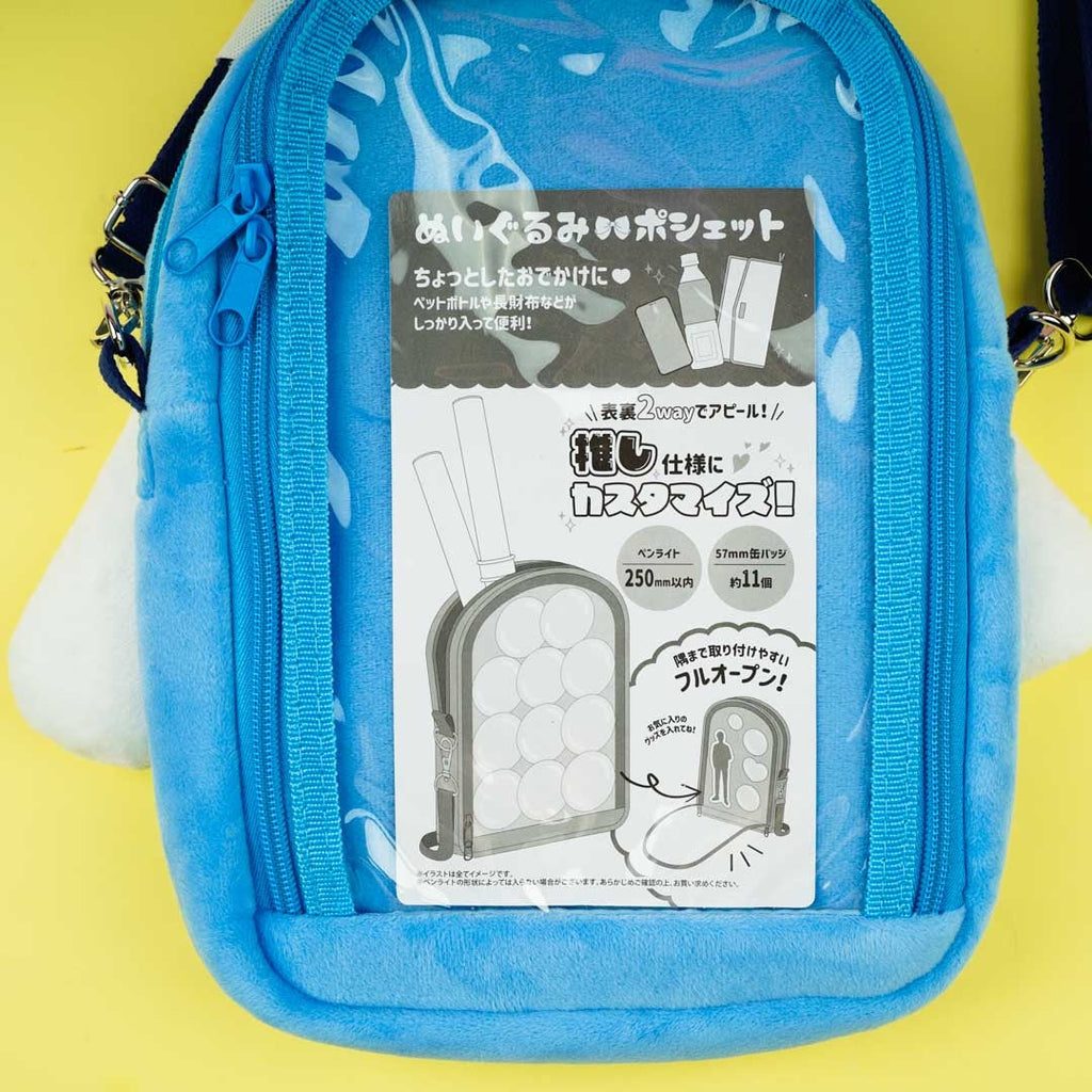 Walk around with this super cute plushie shoulder bag illustrated with Cinnamoroll! It has kawaii pop-up ears and feet. This shoulder bag has a zipper closure, a removable strap, and a clear zippered back pocket.