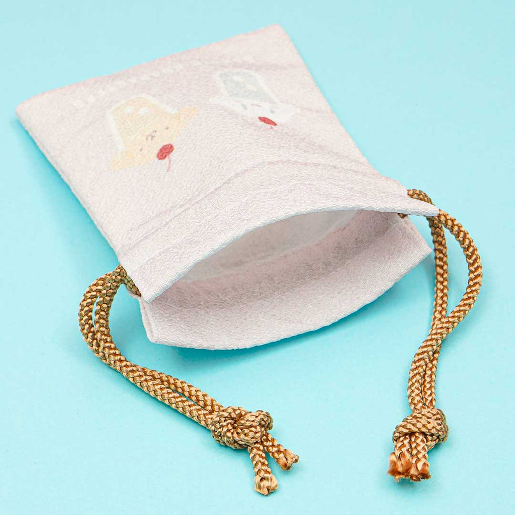 Keep your earphones safe inside this mini pouch! It has cute prints of Cinnamoroll and Pompompurin as macarons and soda. Just pull the strings to close the pouch.