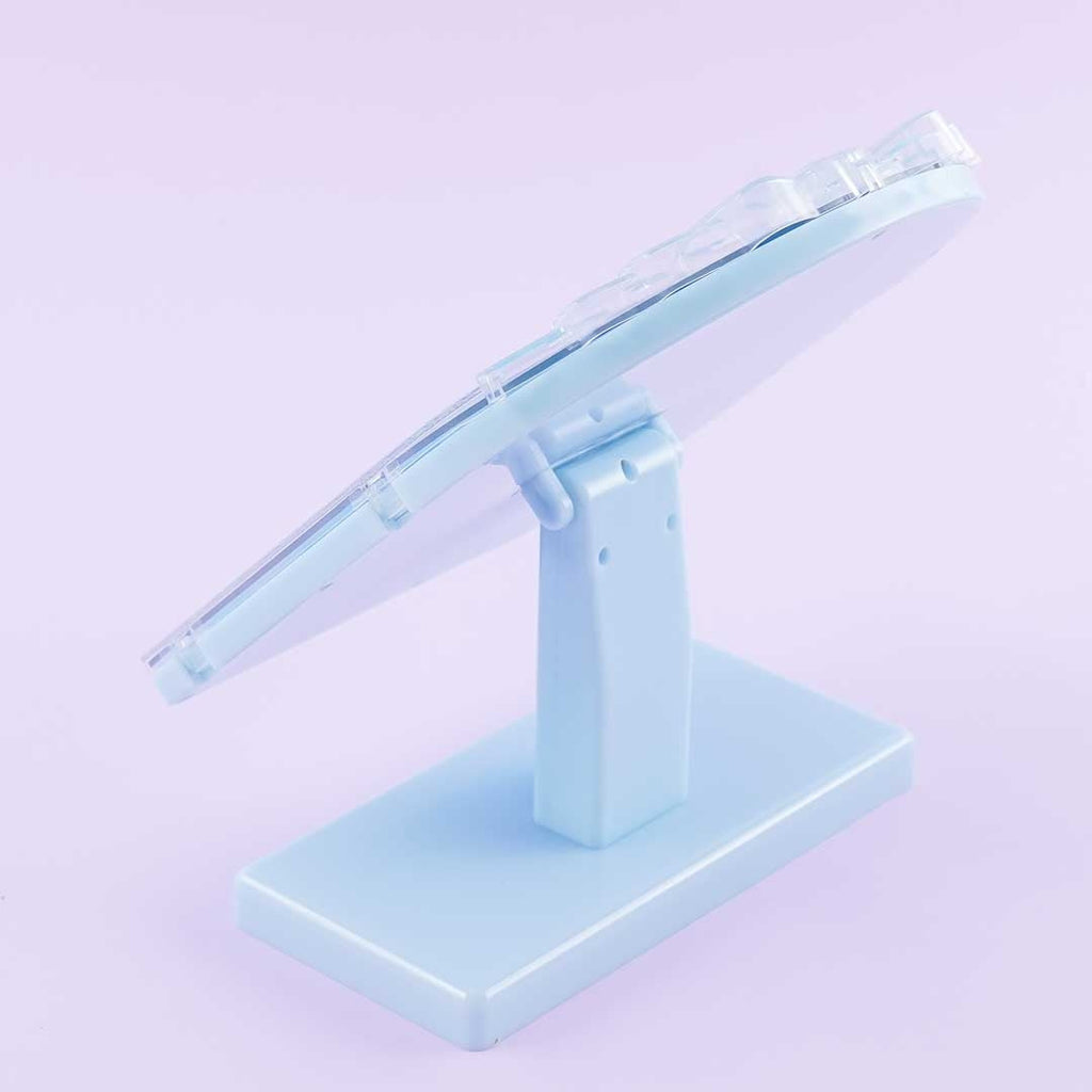 Use this super cute standing desk mirror to apply your makeup. This adjustable mirror has an opening window featuring prints of Cinnamoroll with rainbows.