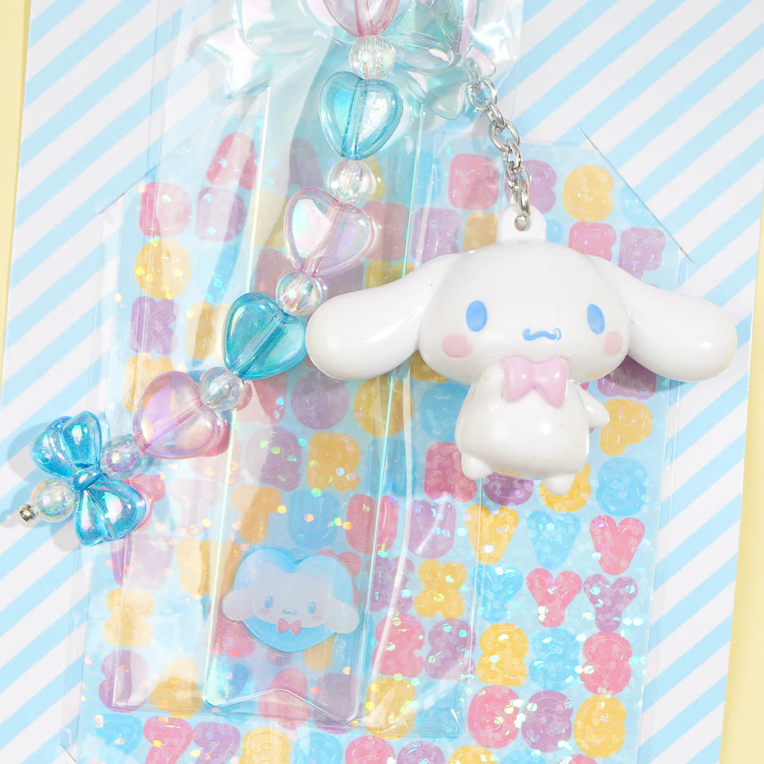 Add a cute and personal touch to your purse using this kawaii charm! It features Cinnamoroll, heart-shaped beads, and a transparent ribbon plate. This charm also comes with alphabet stickers so you can customize the ribbon plate!
