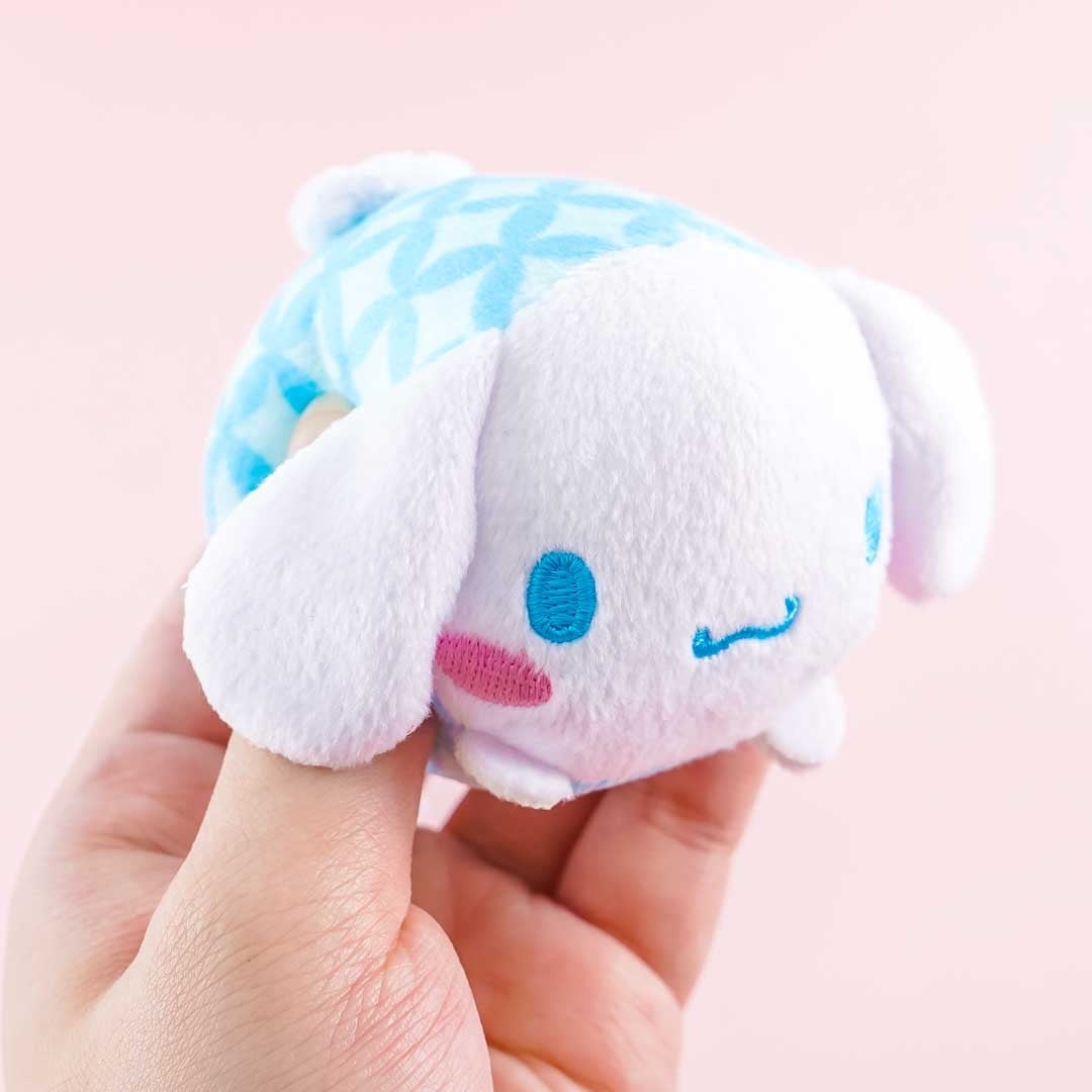 • A cute mini Cinnamoroll bean bag plushie with traditional Japanese patterns