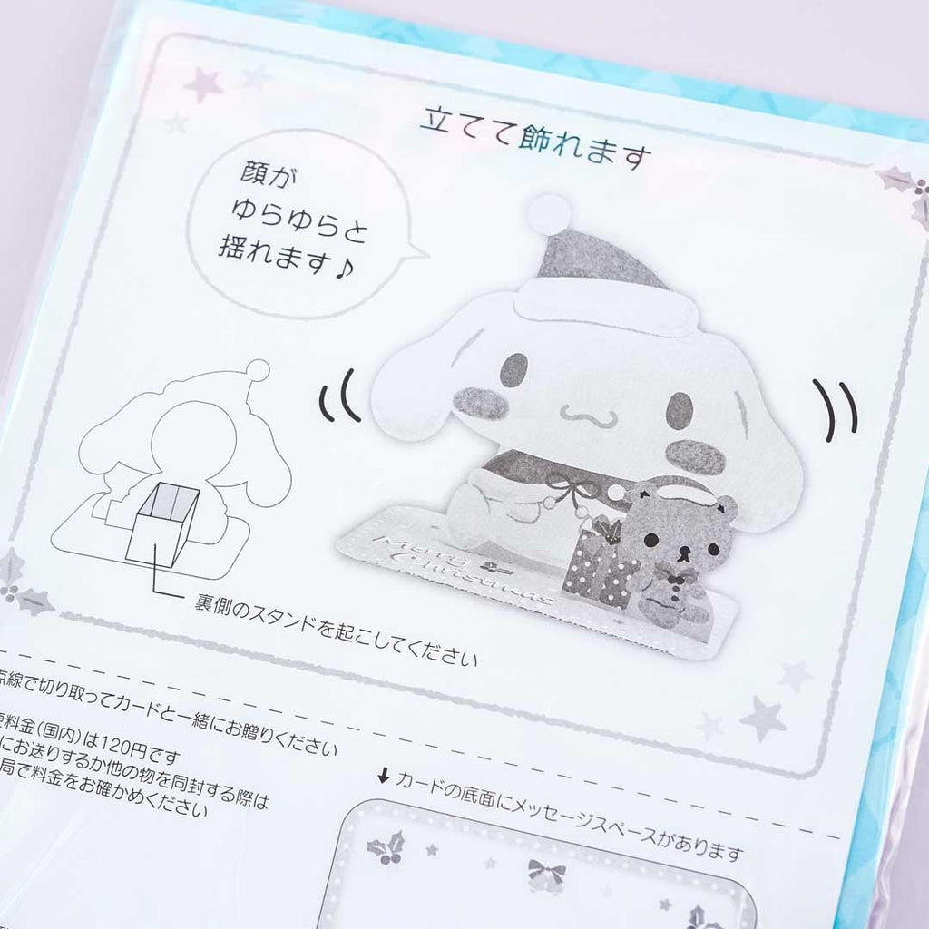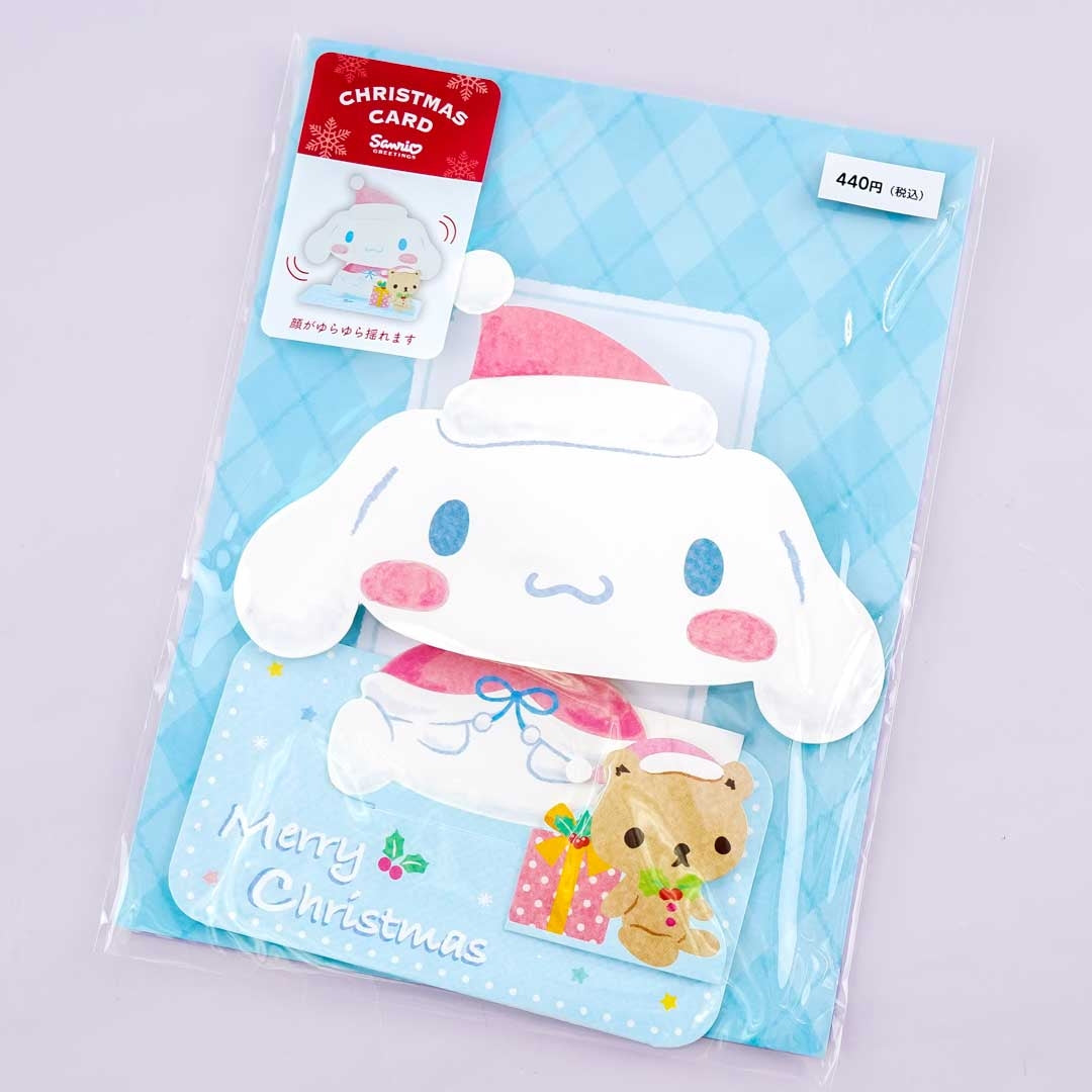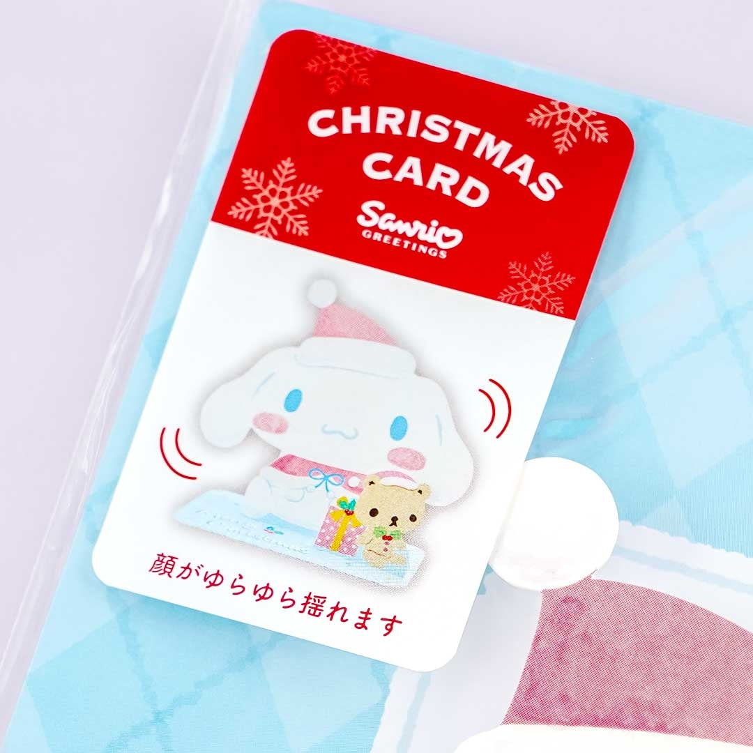 Write down warm wishes on this cute Christmas card illustrated with Cinnamoroll dressed for the holidays. This card can stand on a table and a part of it can shake! You can send this card to loved ones with its free envelope.