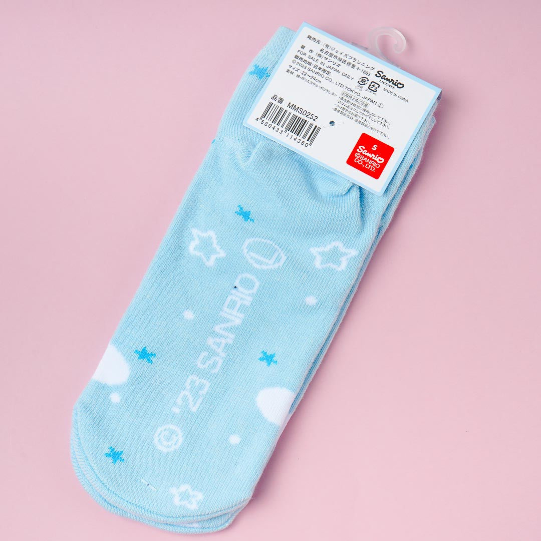 Say goodbye to cold toes while you sleep when you wear this pair of kawaii socks! It features a cute print of Cinnamoroll with a starry background and a bowtie on top.