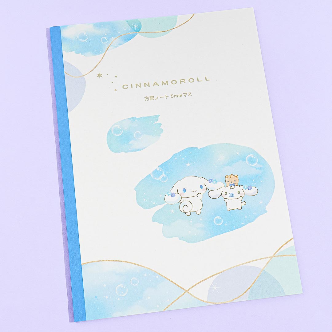 Solve math problems using this kawaii notebook with gridlines! The cover has super cute watercolor-like prints of Cinnamoroll and Milk playing in the clouds.