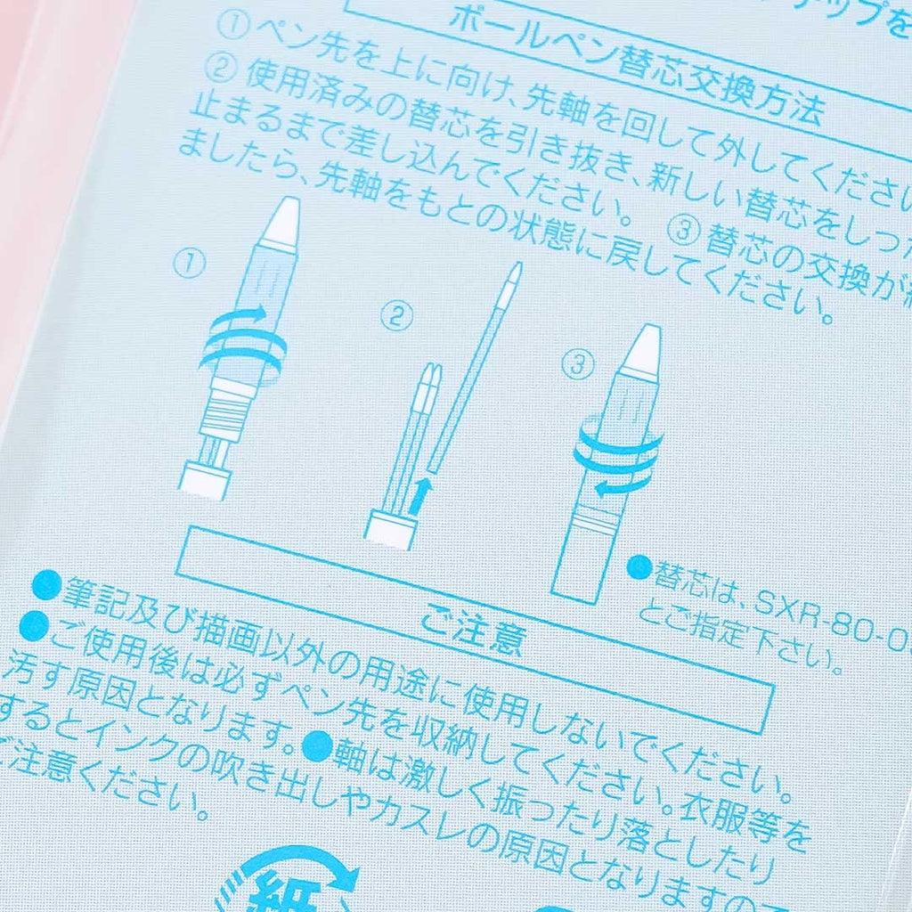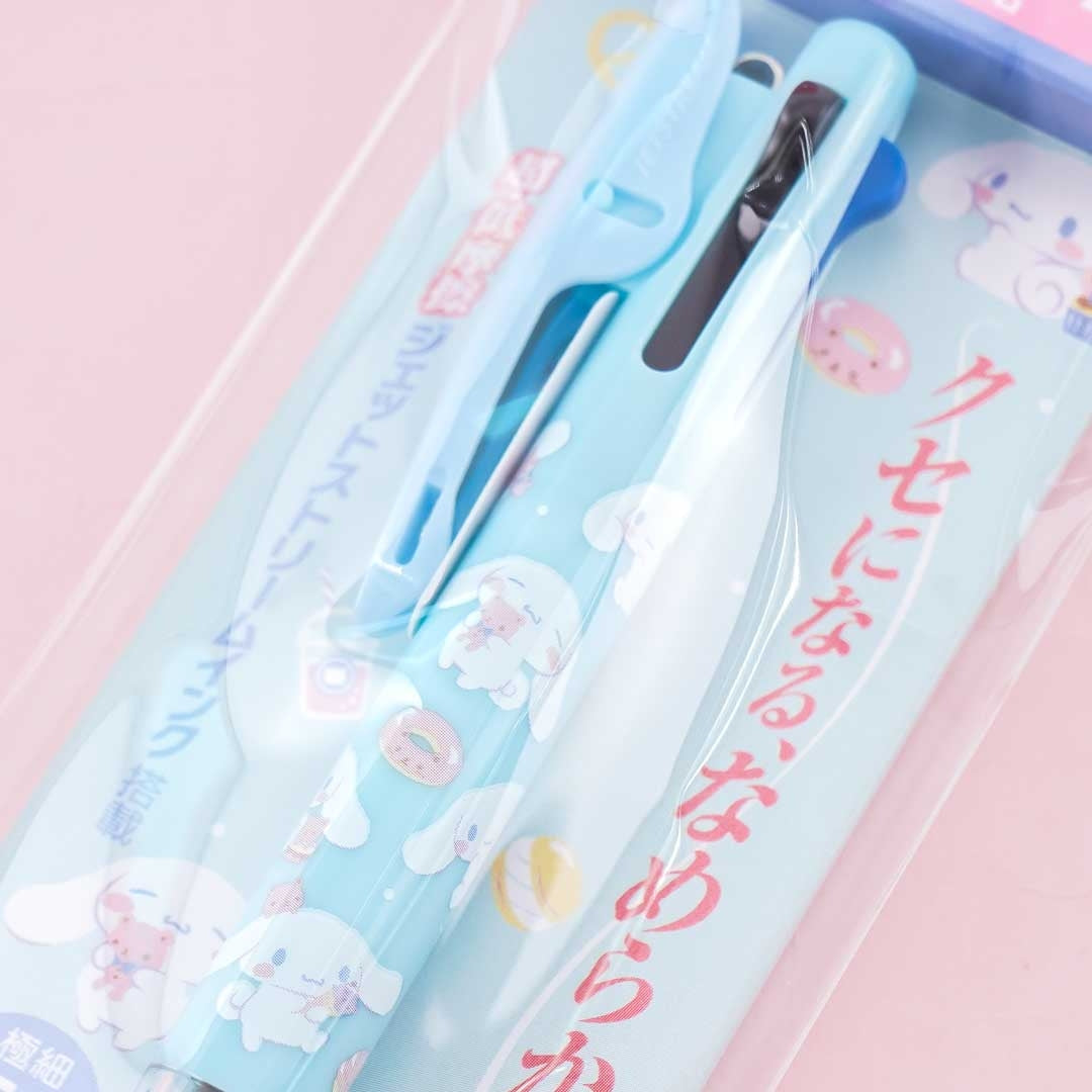 Use this kawaii 3-color ballpen to practice writing stories! It features prints of Cinnamoroll with different sweets. This pen has black, red, and blue ink for you to use. You can write easily thanks to its ultra-low friction jet stream. Attach it to your notebook with its clip!