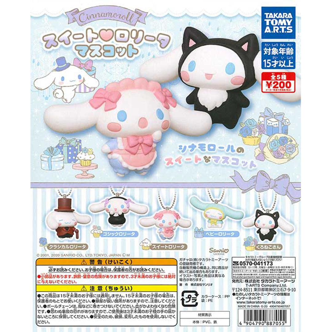 Attach this super kawaii Cinnamaroll Lolita charm collectible to your bag with its detachable ball chain! This super cute collectible featuring Cinnamoroll dressed as a Lolita comes in a gachapon capsule. It's part of the "Cinnamoroll Sweet Lolita Mascot" collection. This set has five designs to collect.