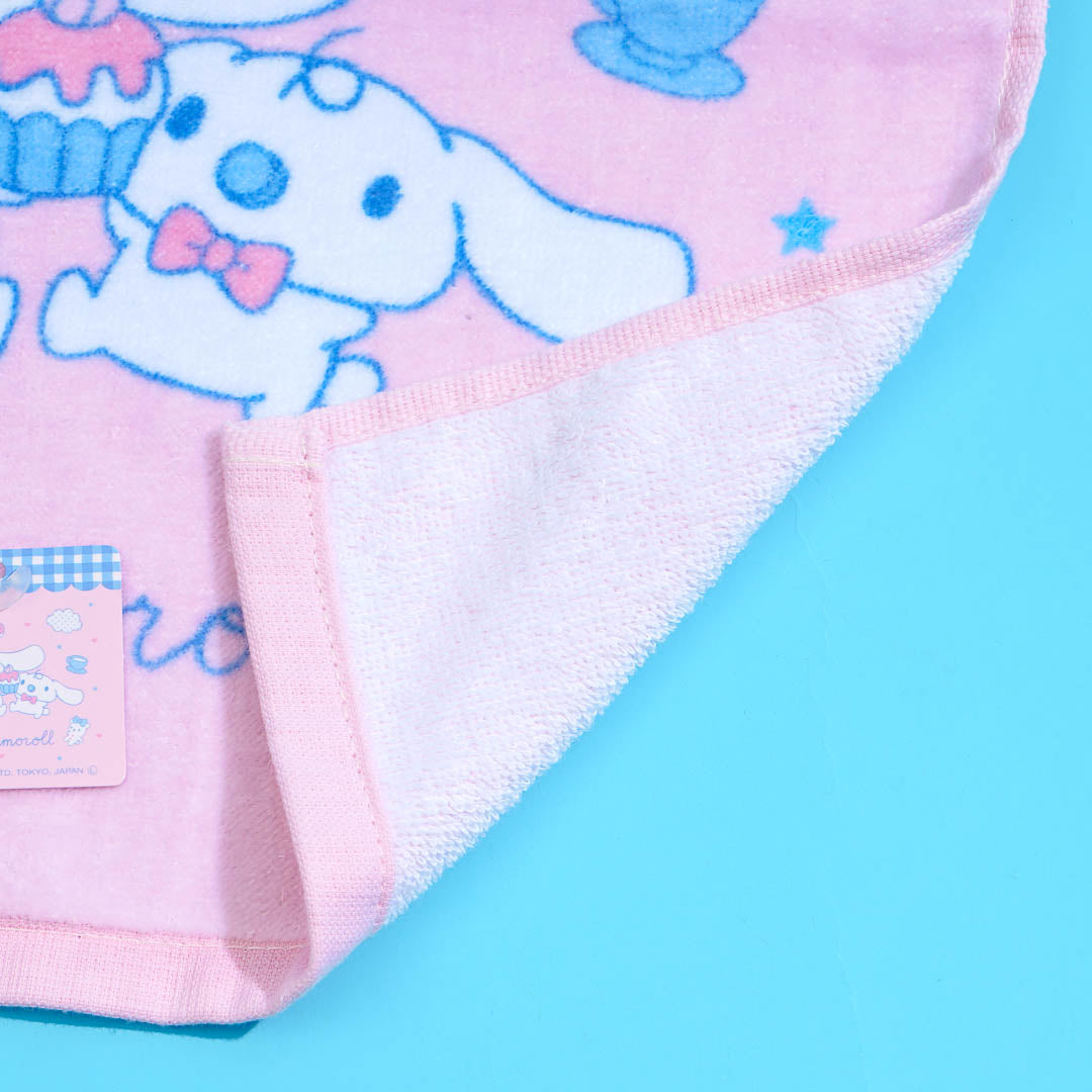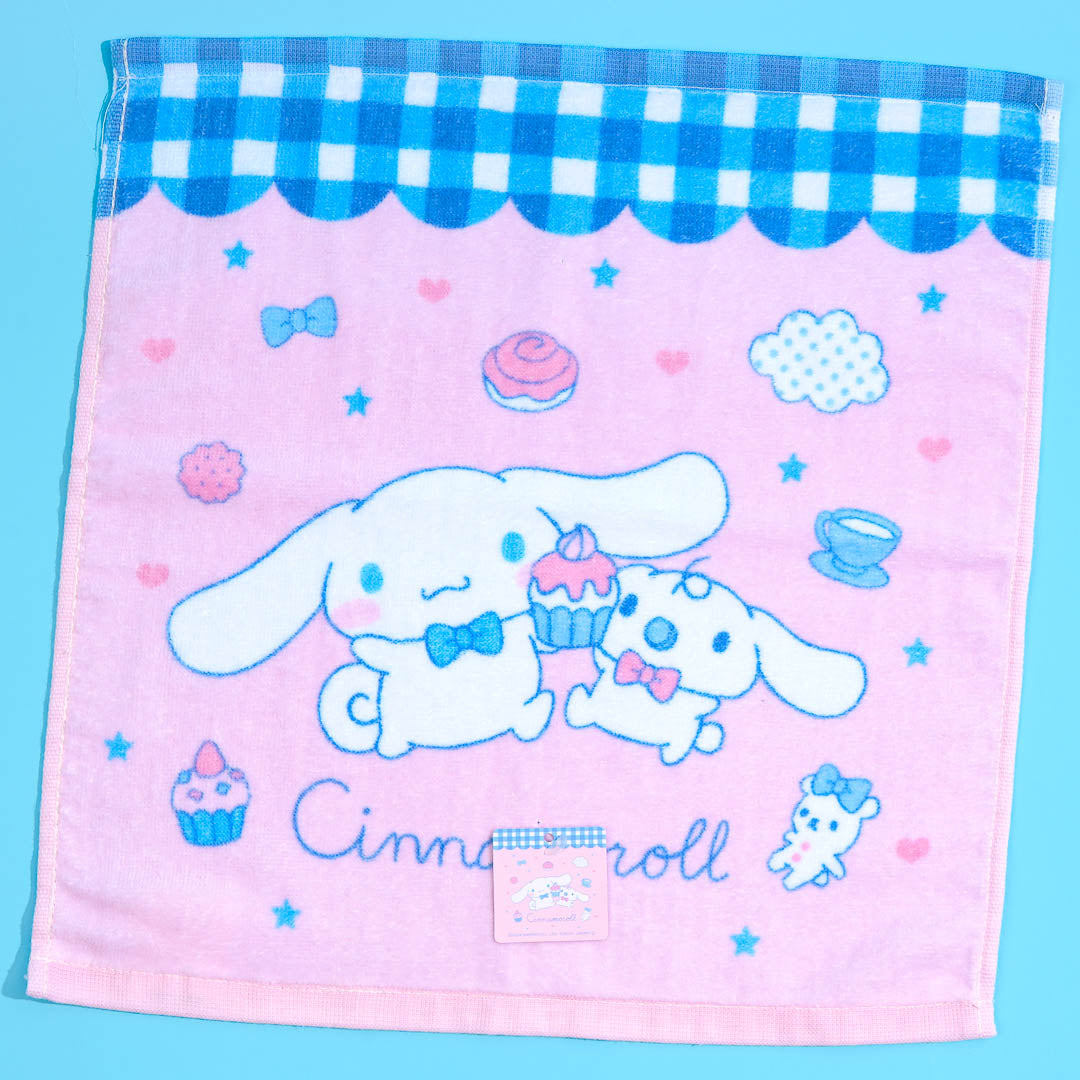 This super kawaii cotton hand towel showcases a print of Cinnamoroll and Milk having a tea party! Use it to keep yourself nice and dry while you're out and about.