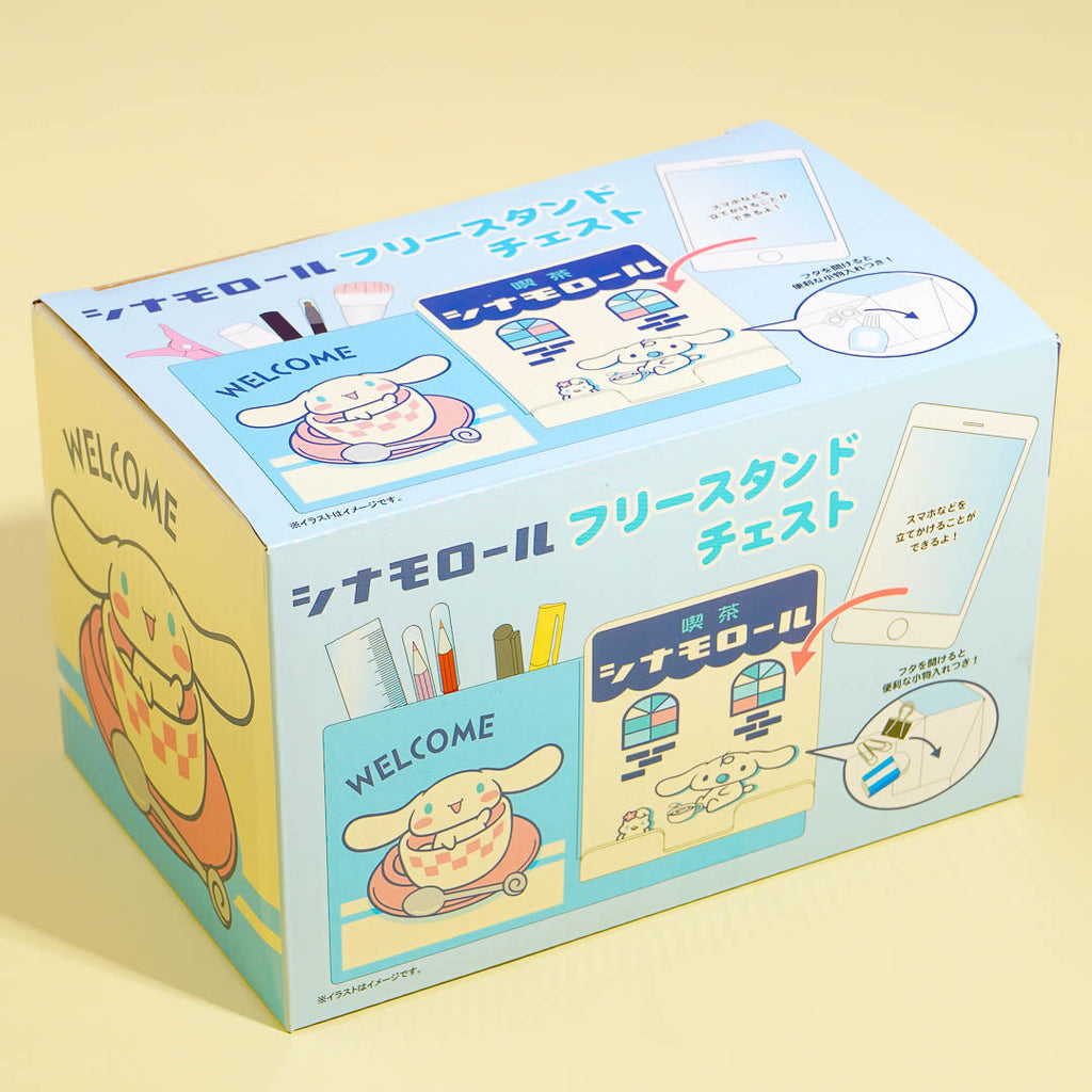 This super cute multi-purpose stand is perfect for organizing your desk! It features a cute print of Cinnamoroll having a tea party. This stand has a compartment for your pens and other stationery and a slanted cover that can be used as a smartphone holder.